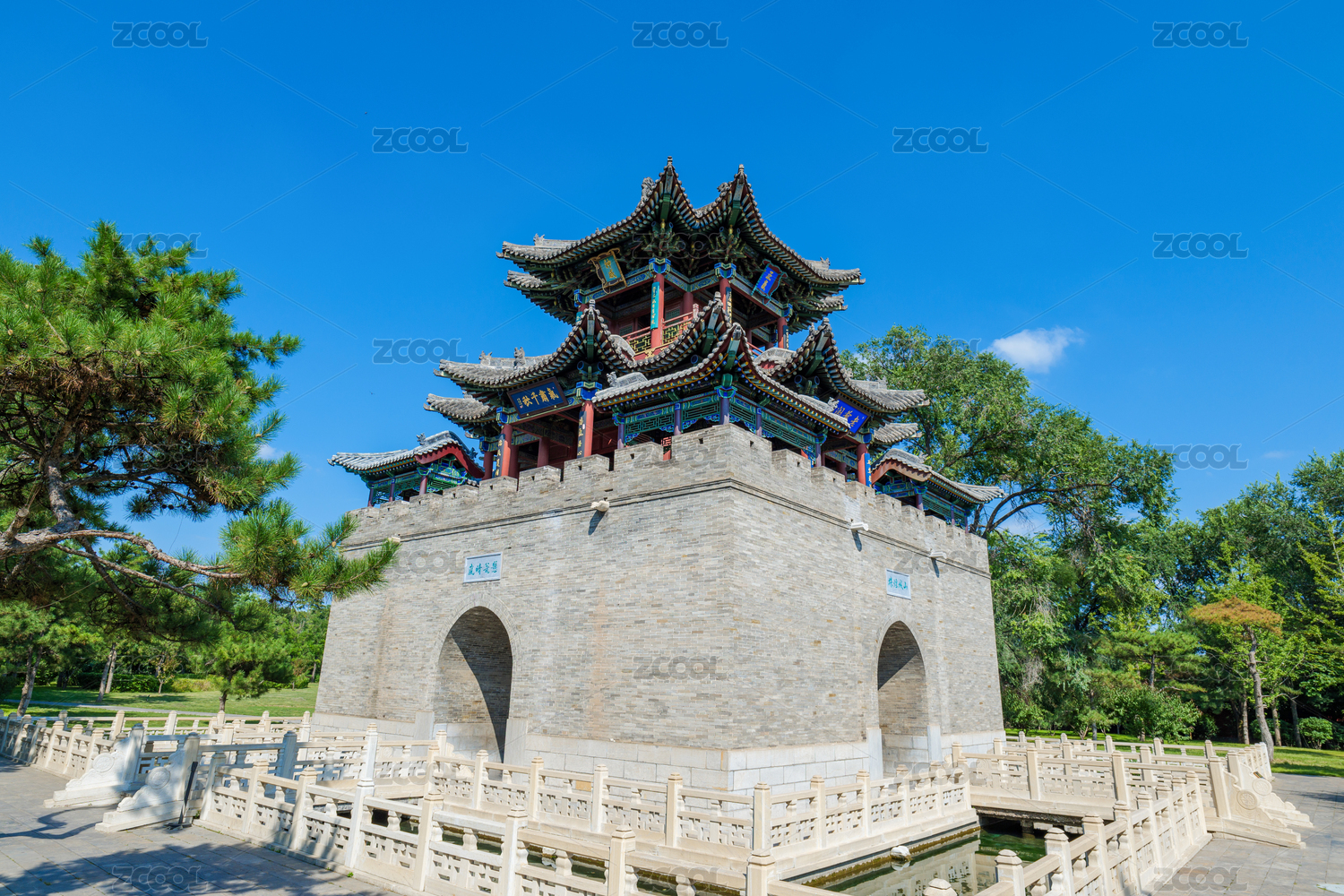 北戴河鸽子窝公园休闲广场八角凉亭风光