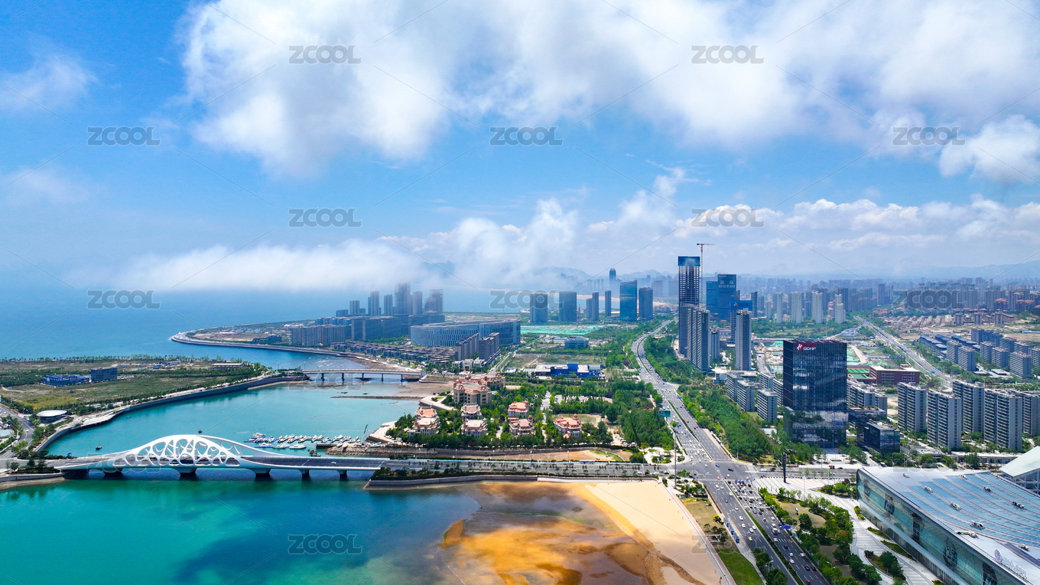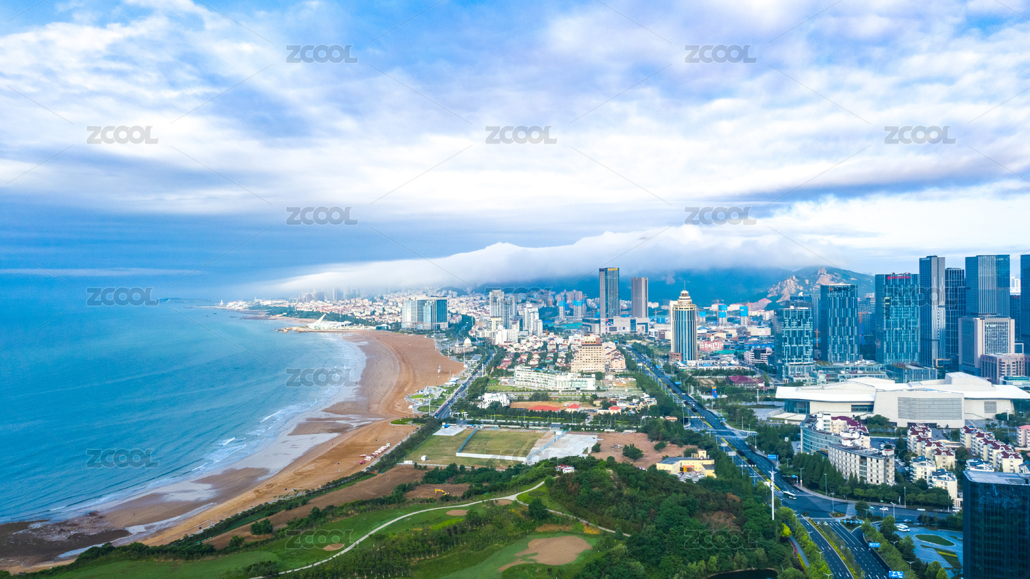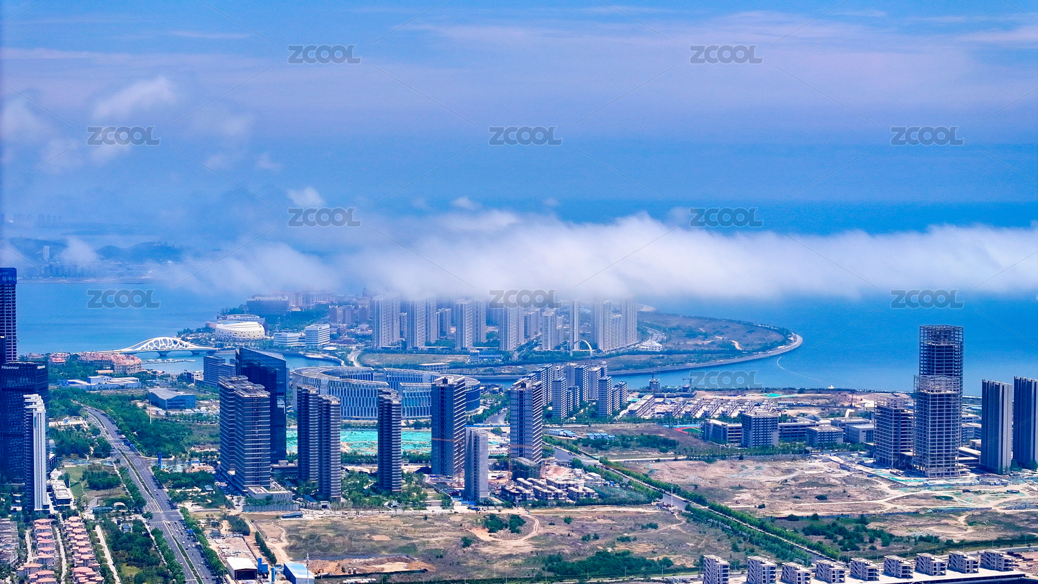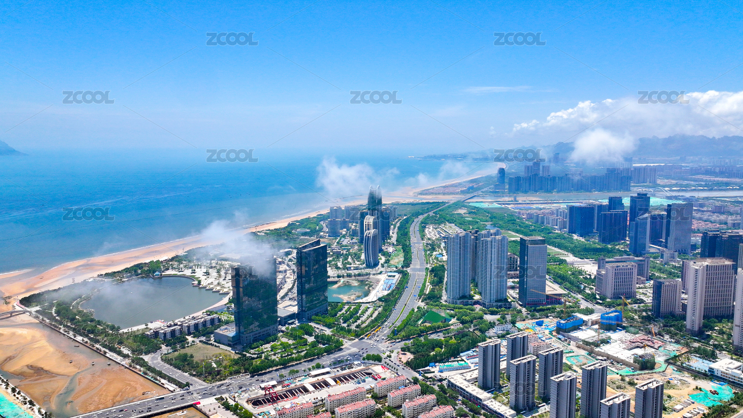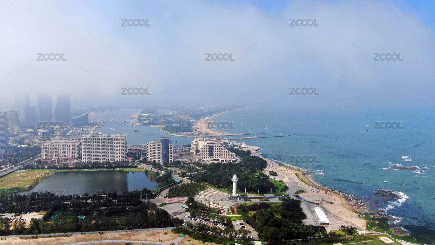 青岛,城市阳台,黄岛区人民政府广场,黄岛区,人民政府广场,公园,广场,高楼,现代化,平流雾