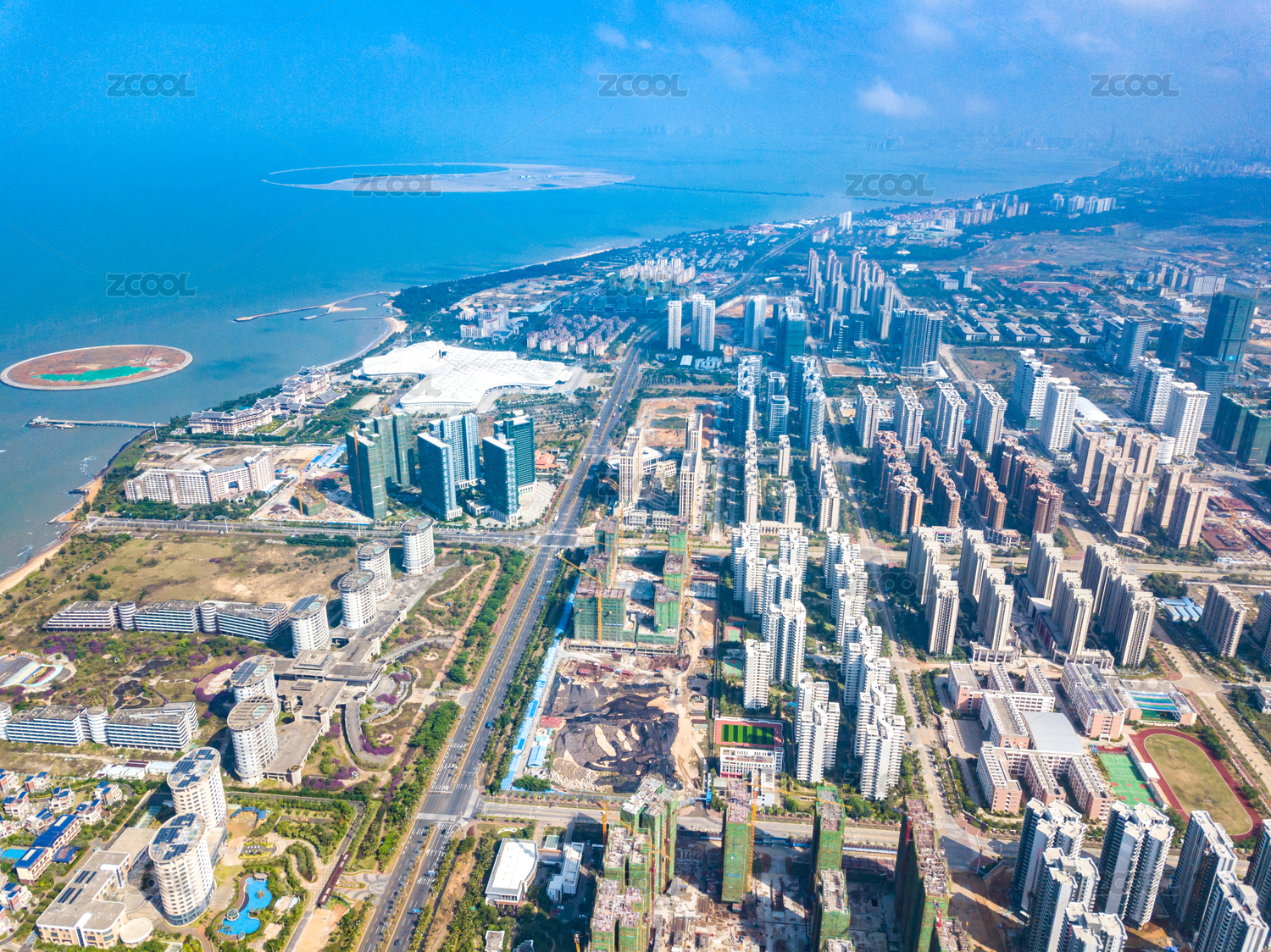 中国海南省海口市西海岸滨海大道都市风光
