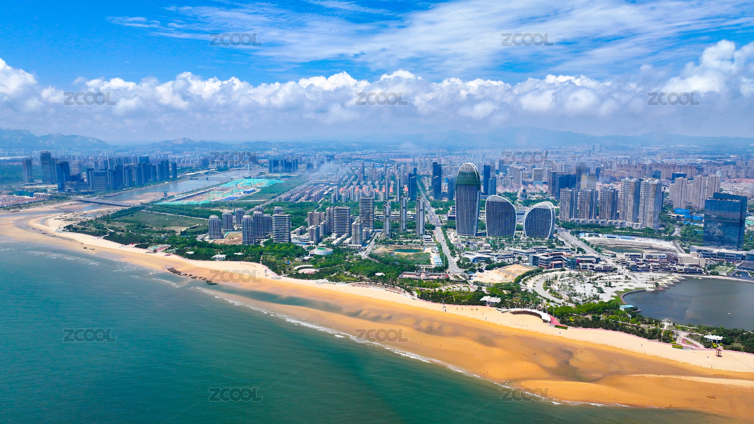 中国山东烟台金沙滩鸟瞰