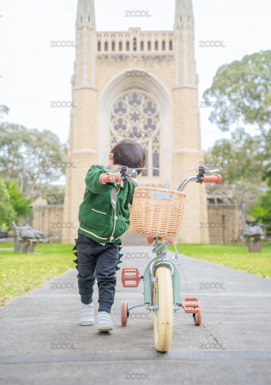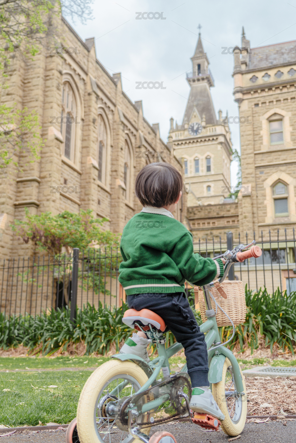 自行车,骑自行车,大学,建筑物,教学楼,古建筑,草坪,树林,小道,云彩