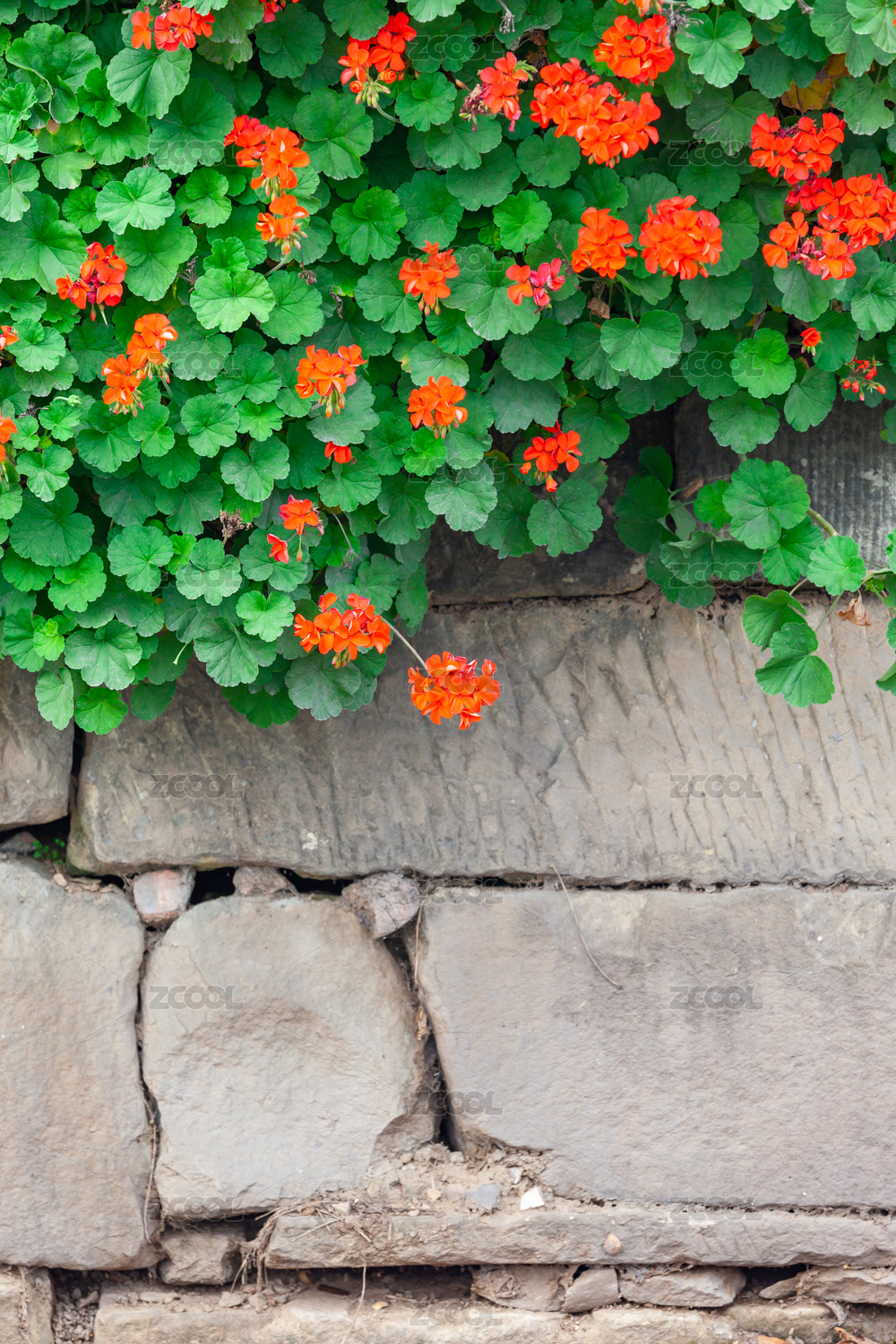 路边石缝中生长茂盛的红色天竺葵