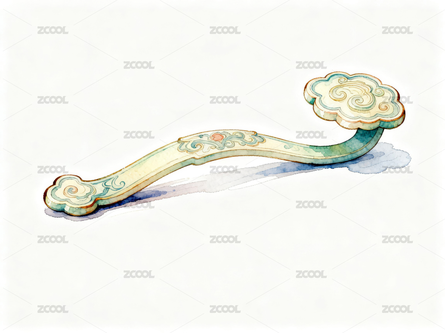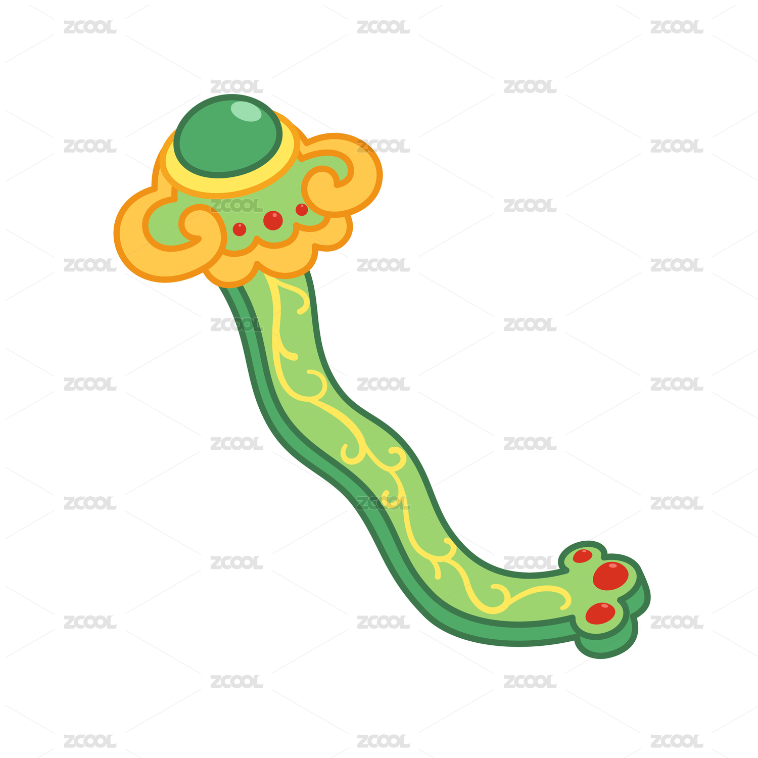 国潮,矢量玉如意,玉如意,手绘国潮,国潮插画