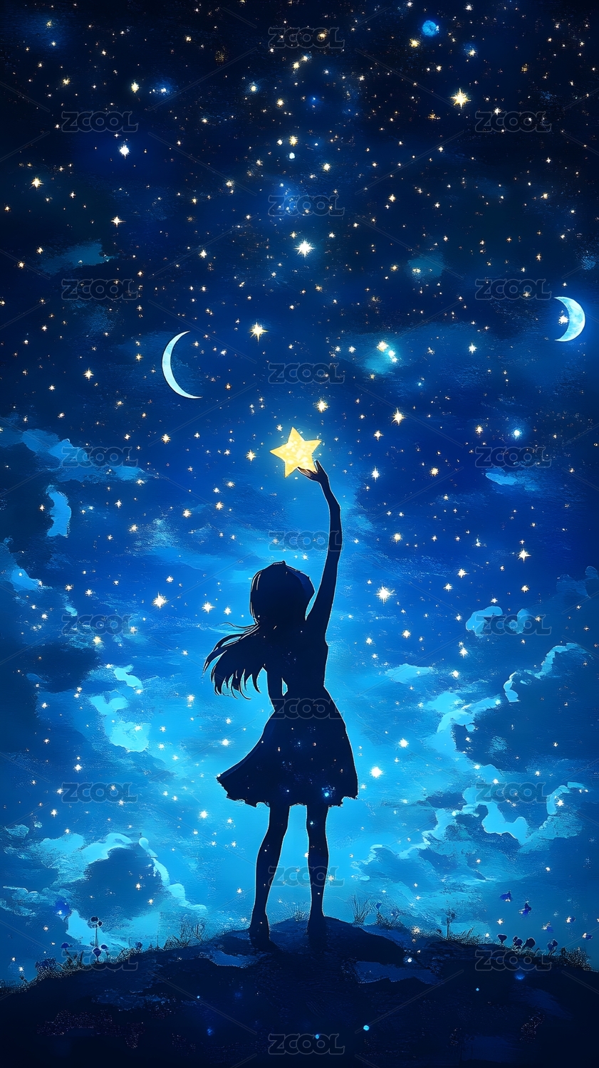 月亮天空人物插画海报背景