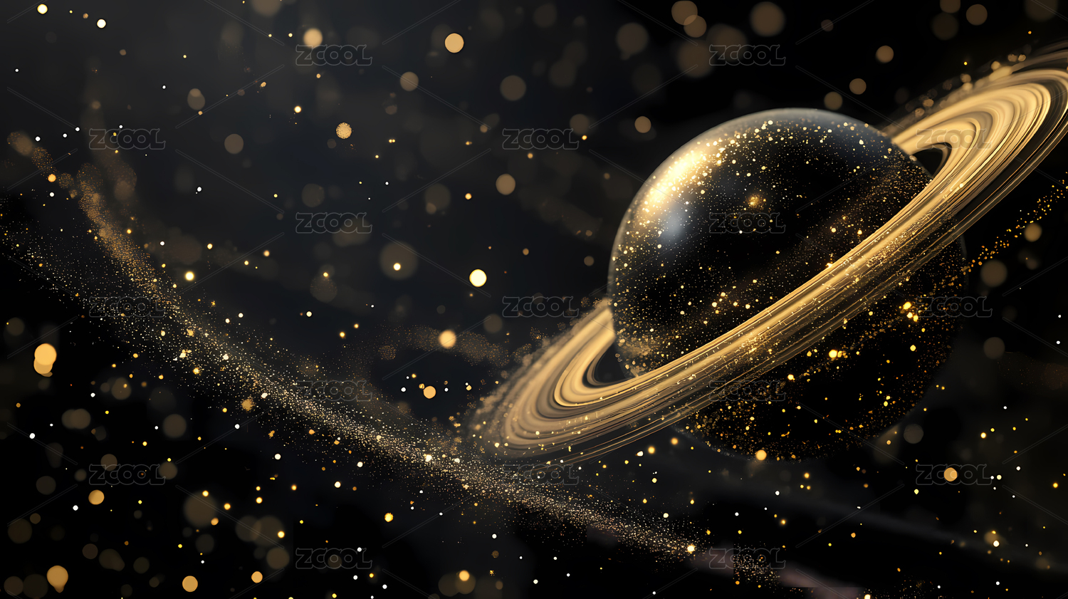 闪耀的金色星球和宇宙星系,黑金创意背景