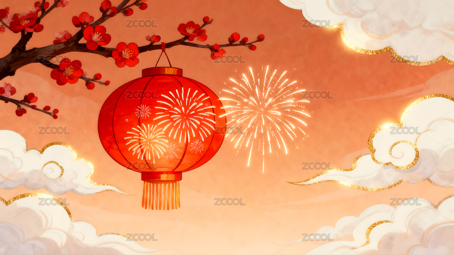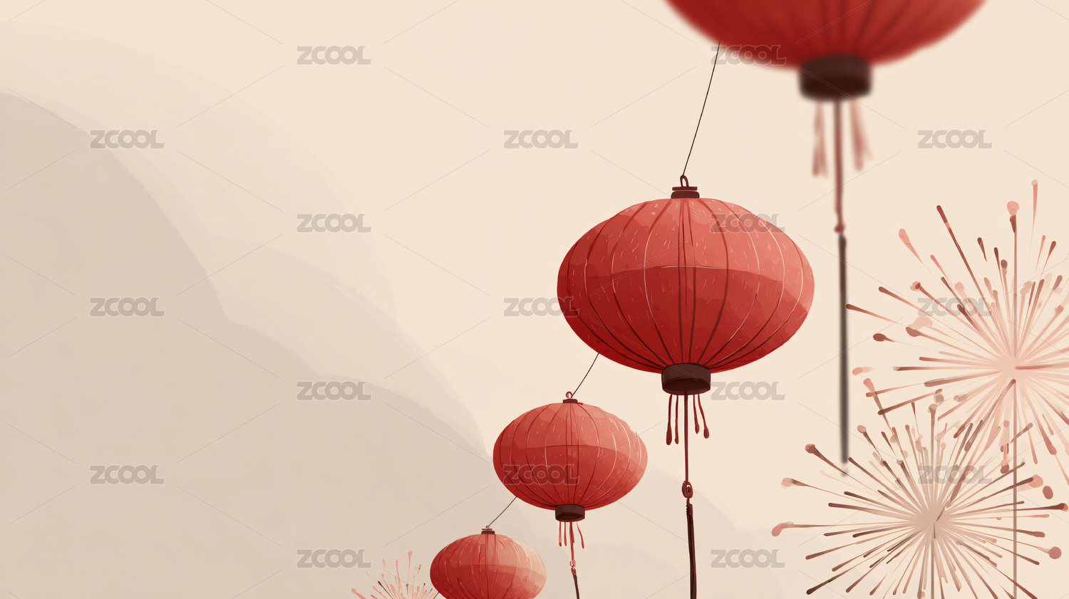 春节过年灯笼竹叶扁平风格插画背景壁纸
