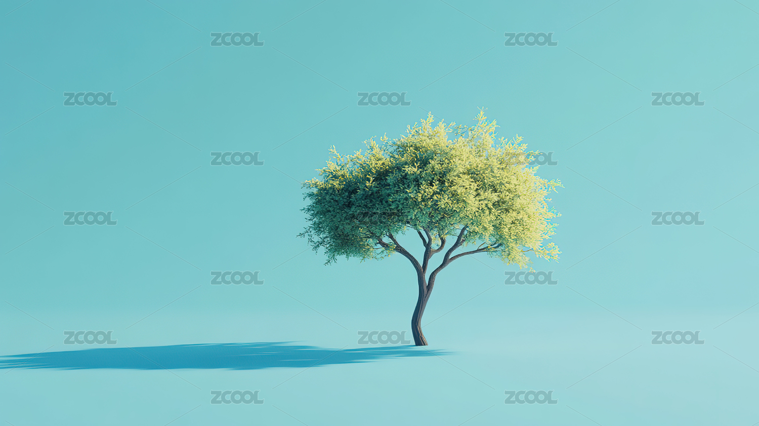 蓝色背景下的树