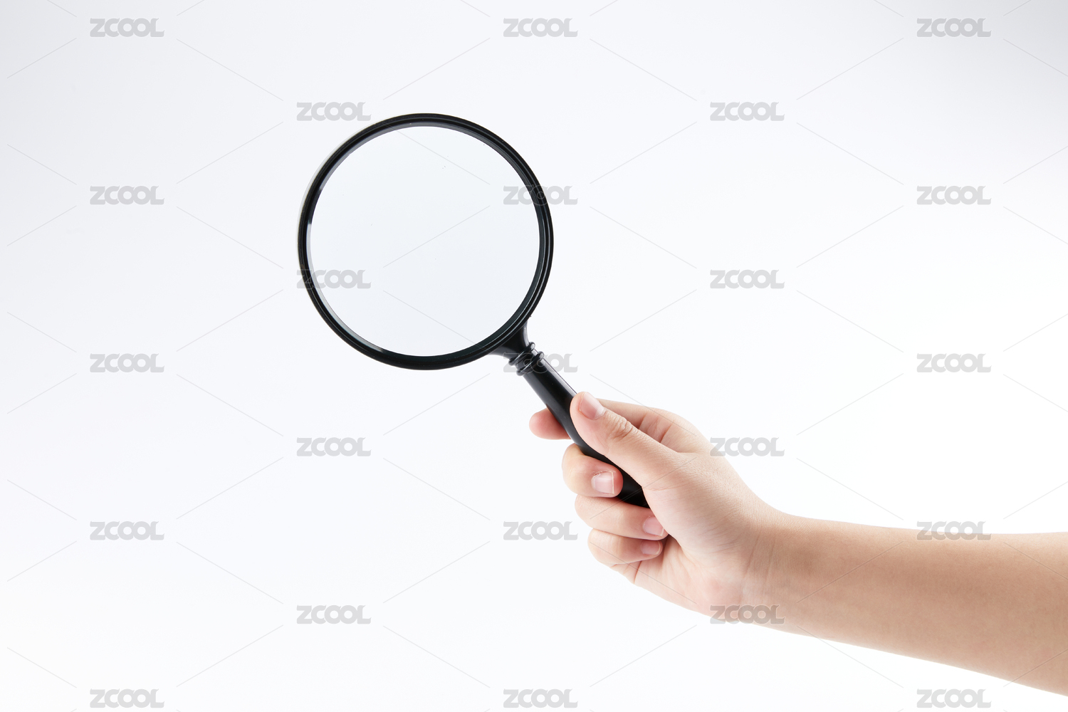 白色背景上手拿放大镜