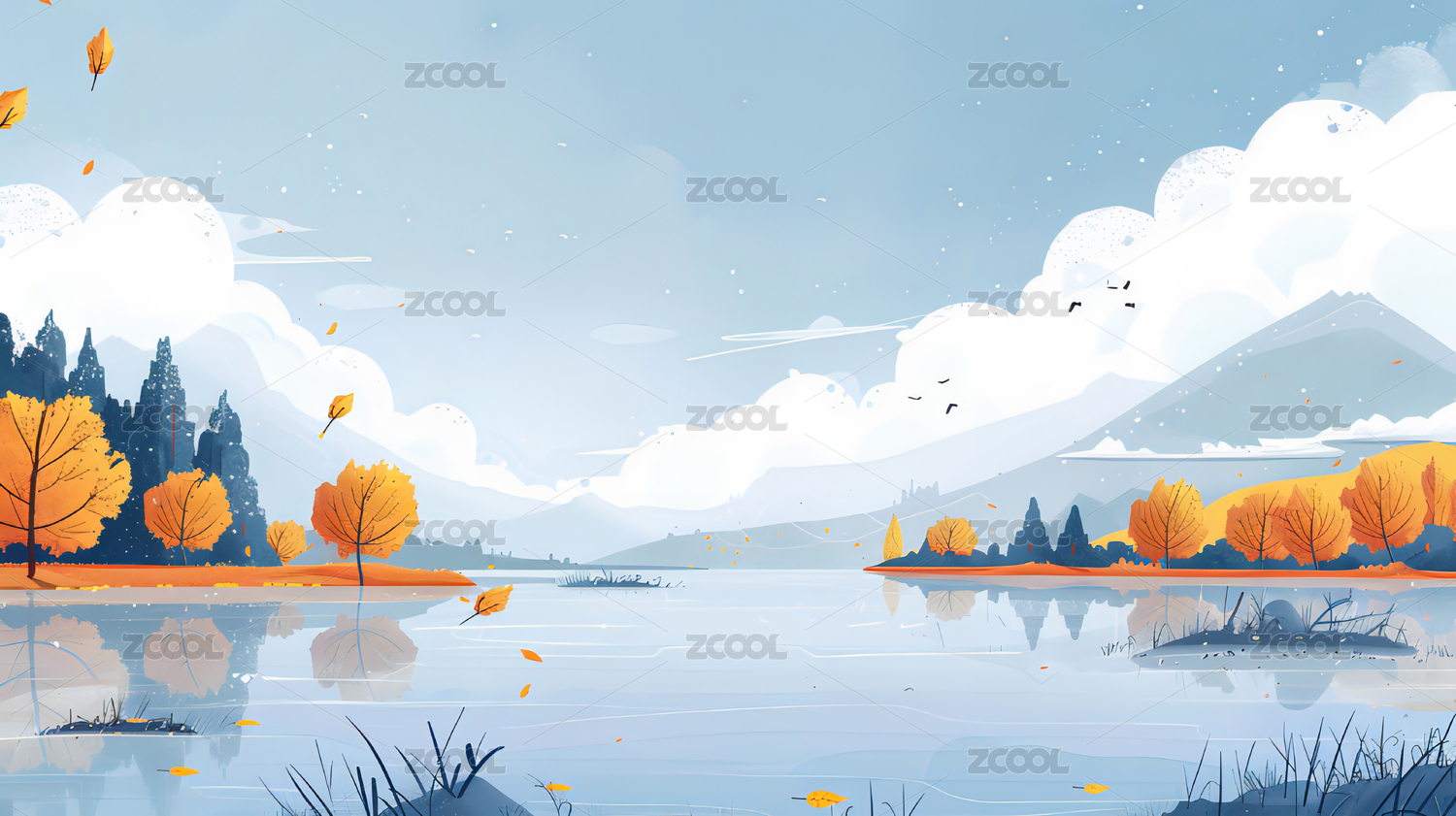 秋日户外风光淡彩扁平风格插画