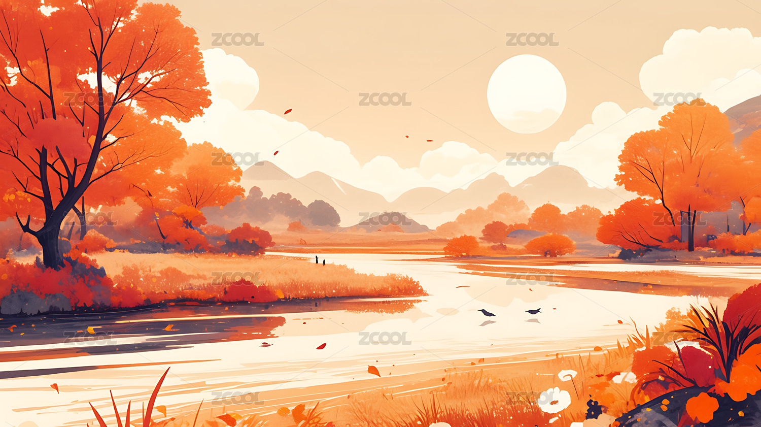 秋季风景插画扁平风格