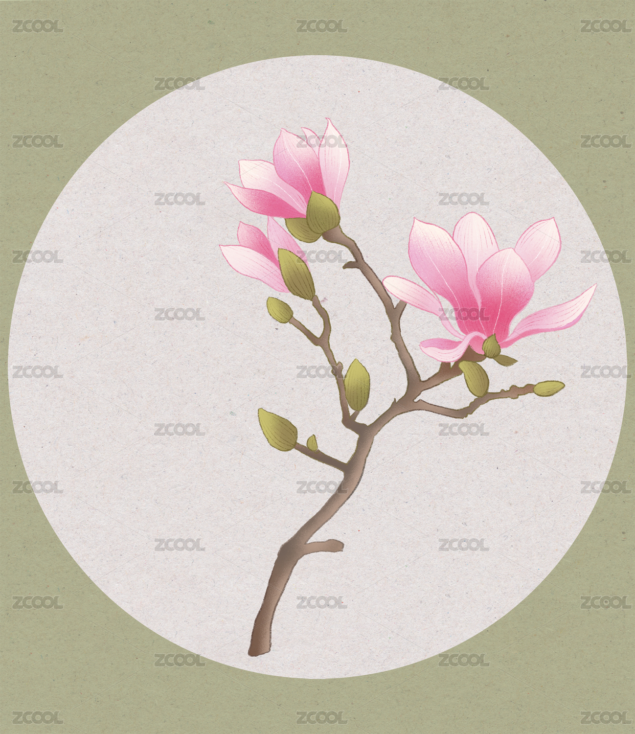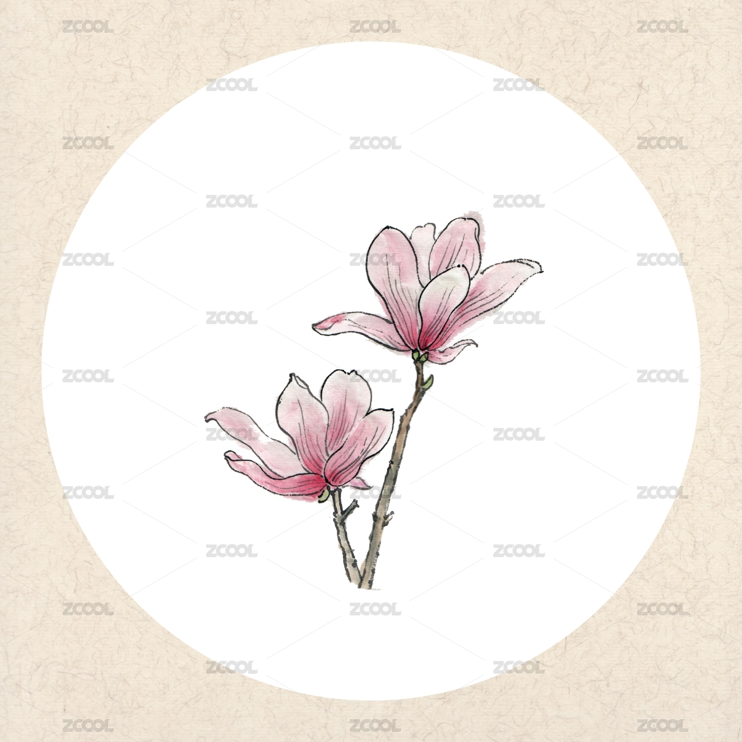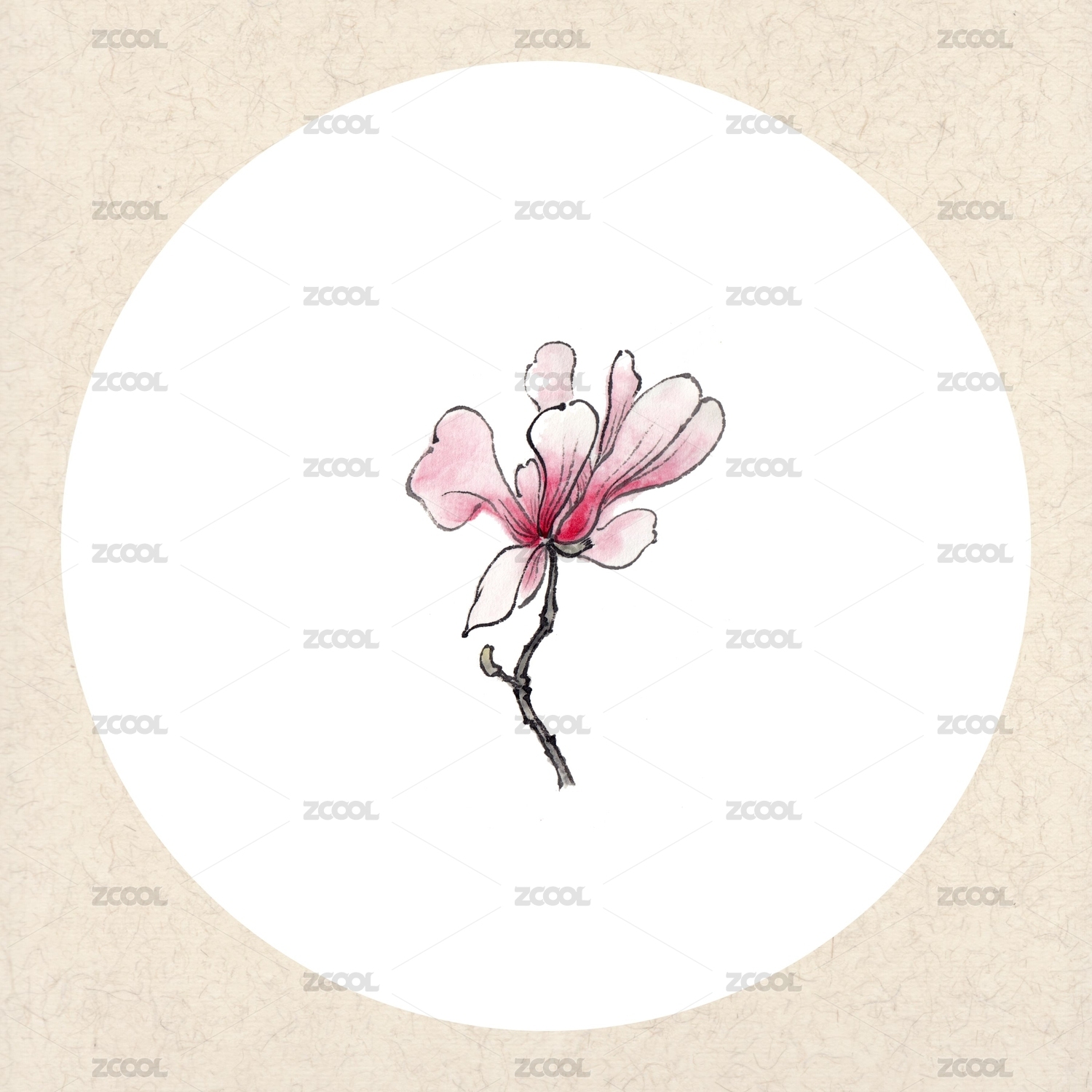 水墨水彩桃花中国风樱花桃花插画装饰画