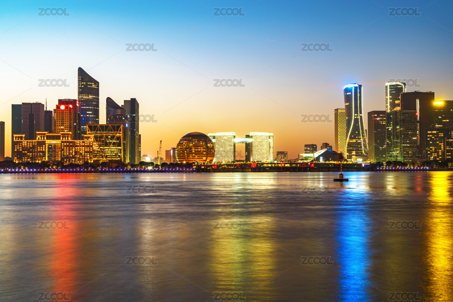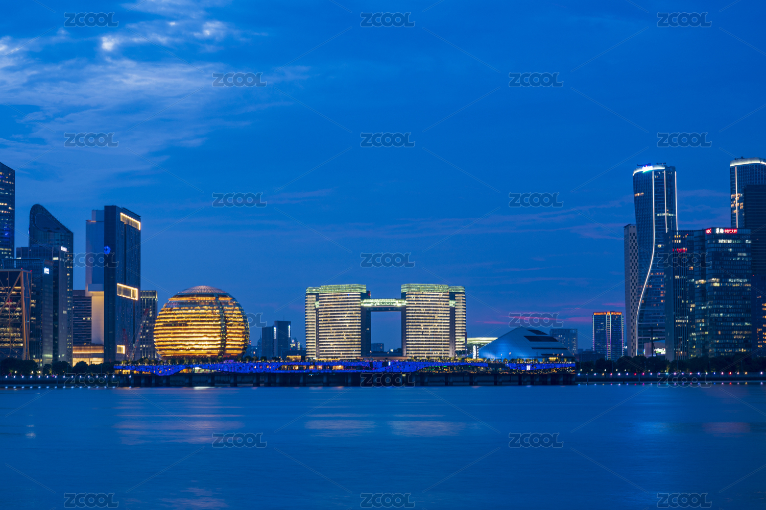 杭州,CBD,蓝调,时刻,夜景,城市中心,建筑,外观,外景