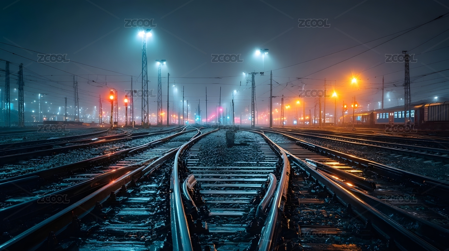 凌晨的货运火车站,铁轨,火车,贸易往来