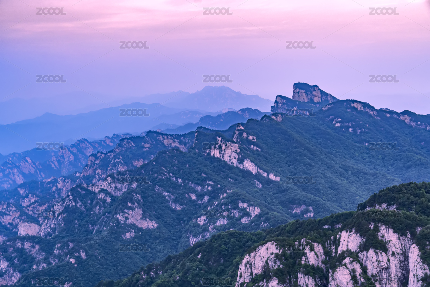 中国河南嵩县白云山晨光下的层峦叠嶂