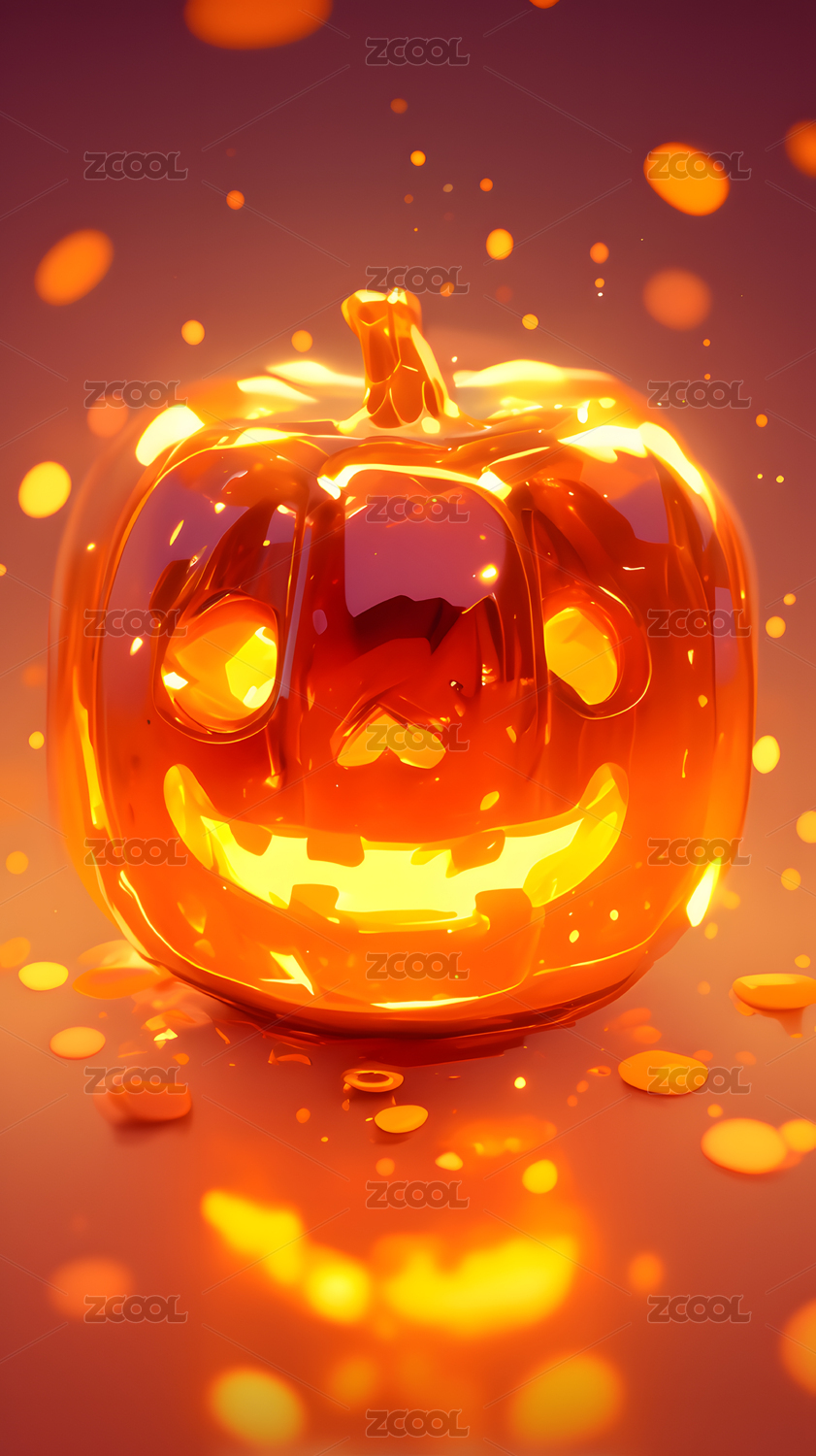 万圣节南瓜的特写镜头眼睛发光高清图片