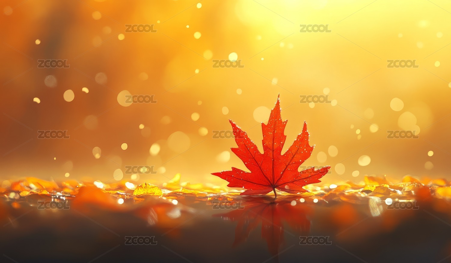 一片秋叶漂浮在水面泛起圈圈涟漪