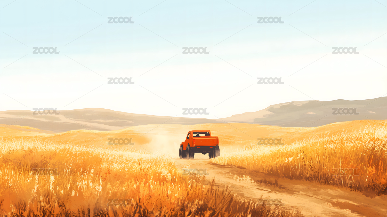 秋日荒原的越野车