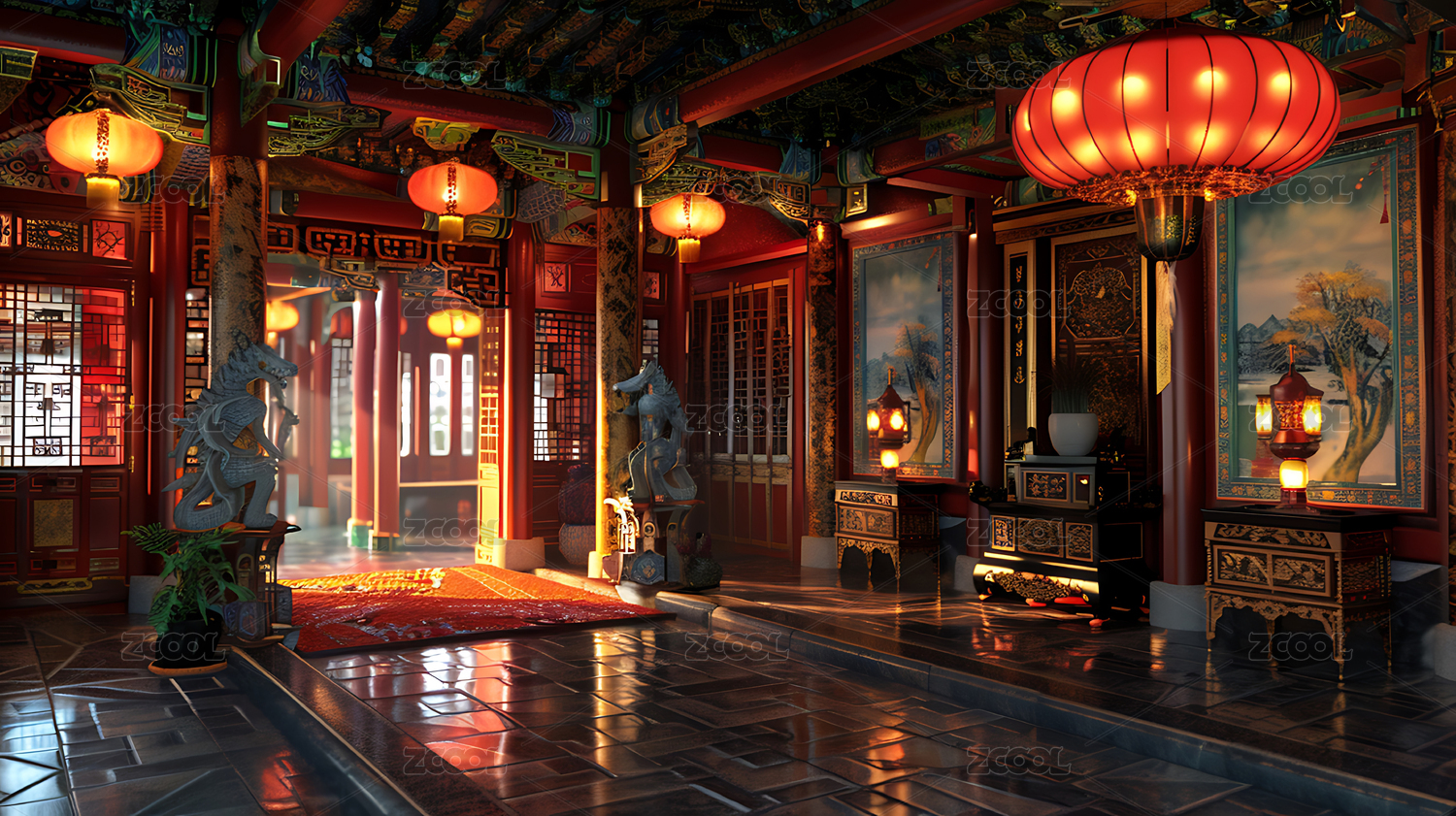 古镇,国风,中式,古风,传统,3d,插画,建筑,历史,中国