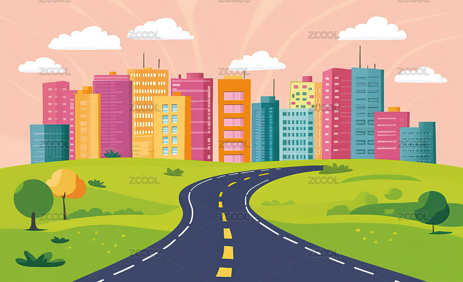 儿童插画,交通地图,城市,彩色,乐趣,建筑,交通,卡通,道路,儿童