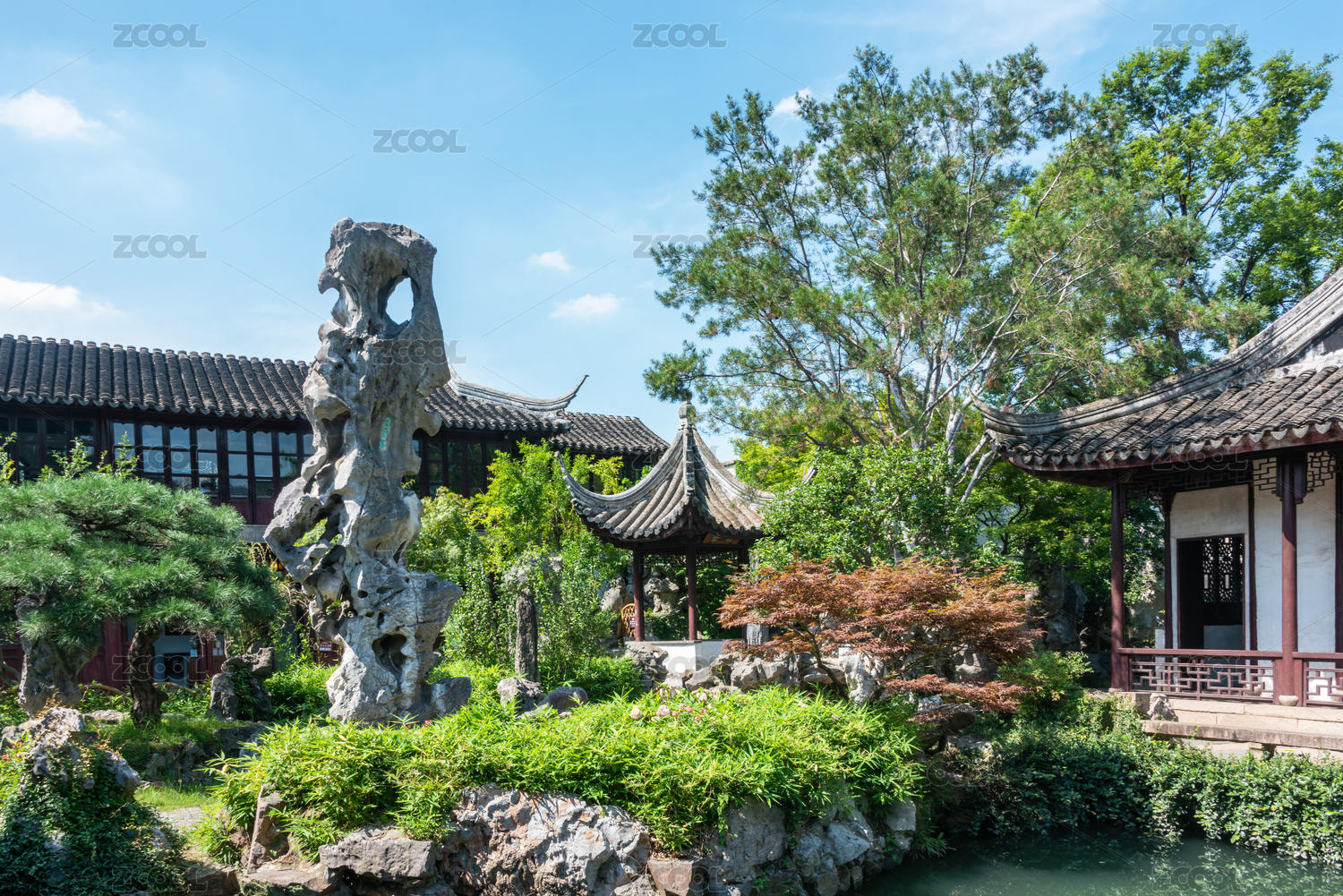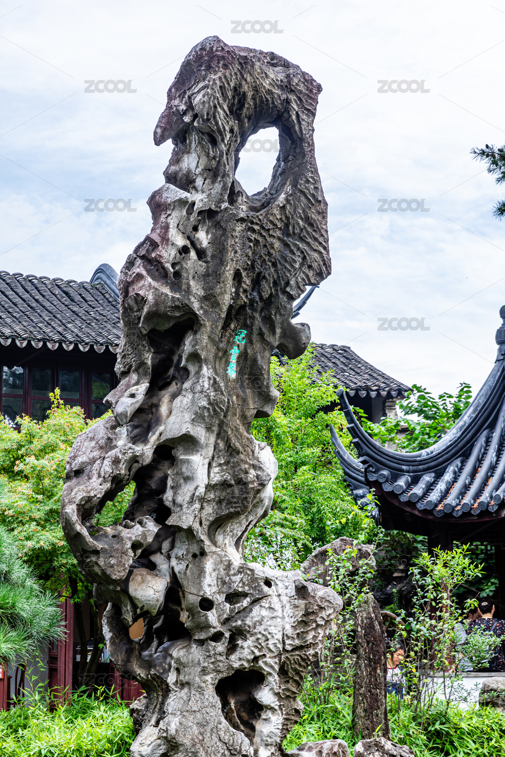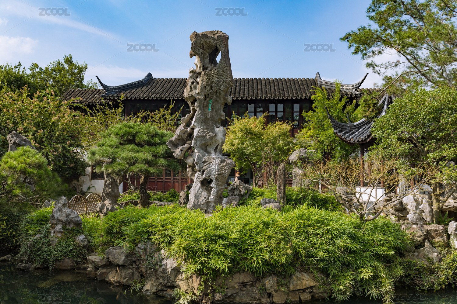 苏州,园林,古建,植物,光线,蓝天,假山,冠云峰,太湖石,江南