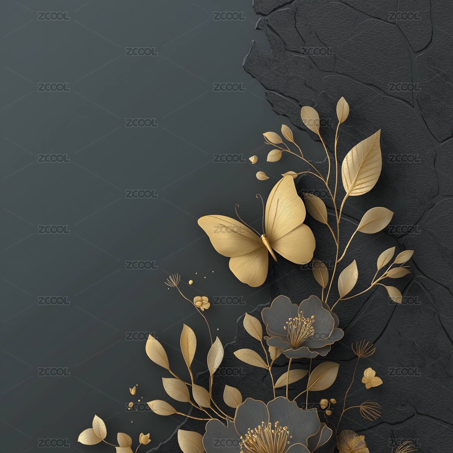 极简, 立体, 现代设计, 优雅, 装饰, 黑色背景, 高端, 视觉艺术, 金色, 奢华
