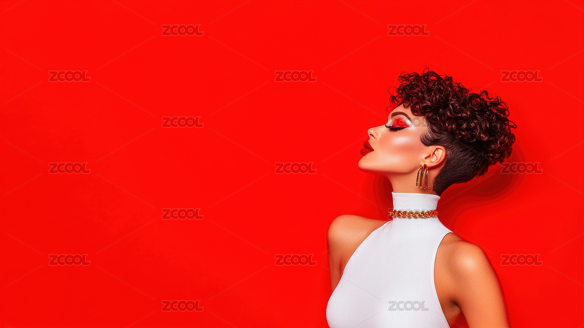 肖像,人像,外国人,DXCZ202406,女性,耳环,短发,时尚,艺术,魅力