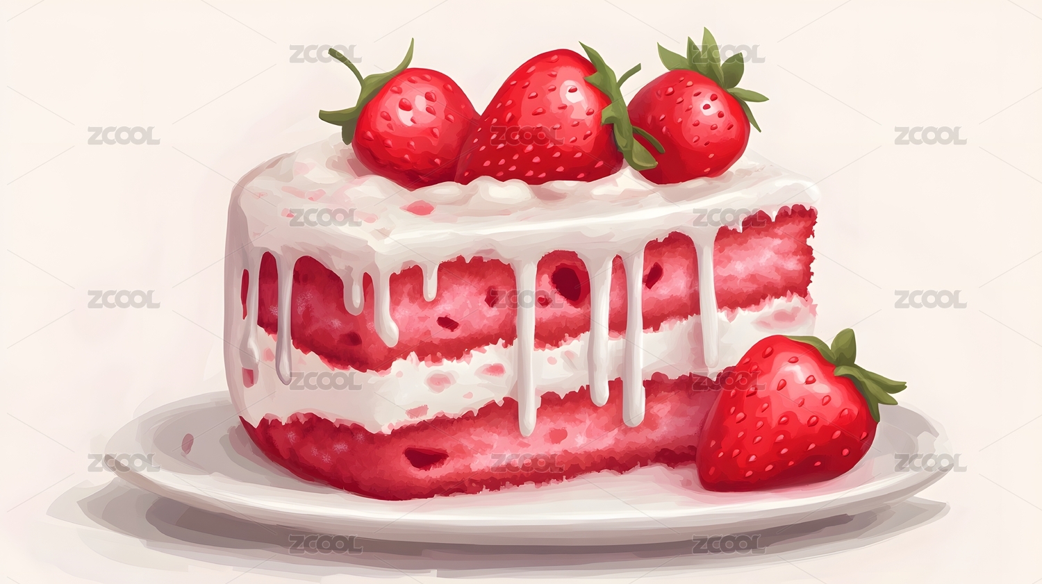 小清新,插画,食物,草莓,蛋糕,奶油,生日,甜点,甜品,甜