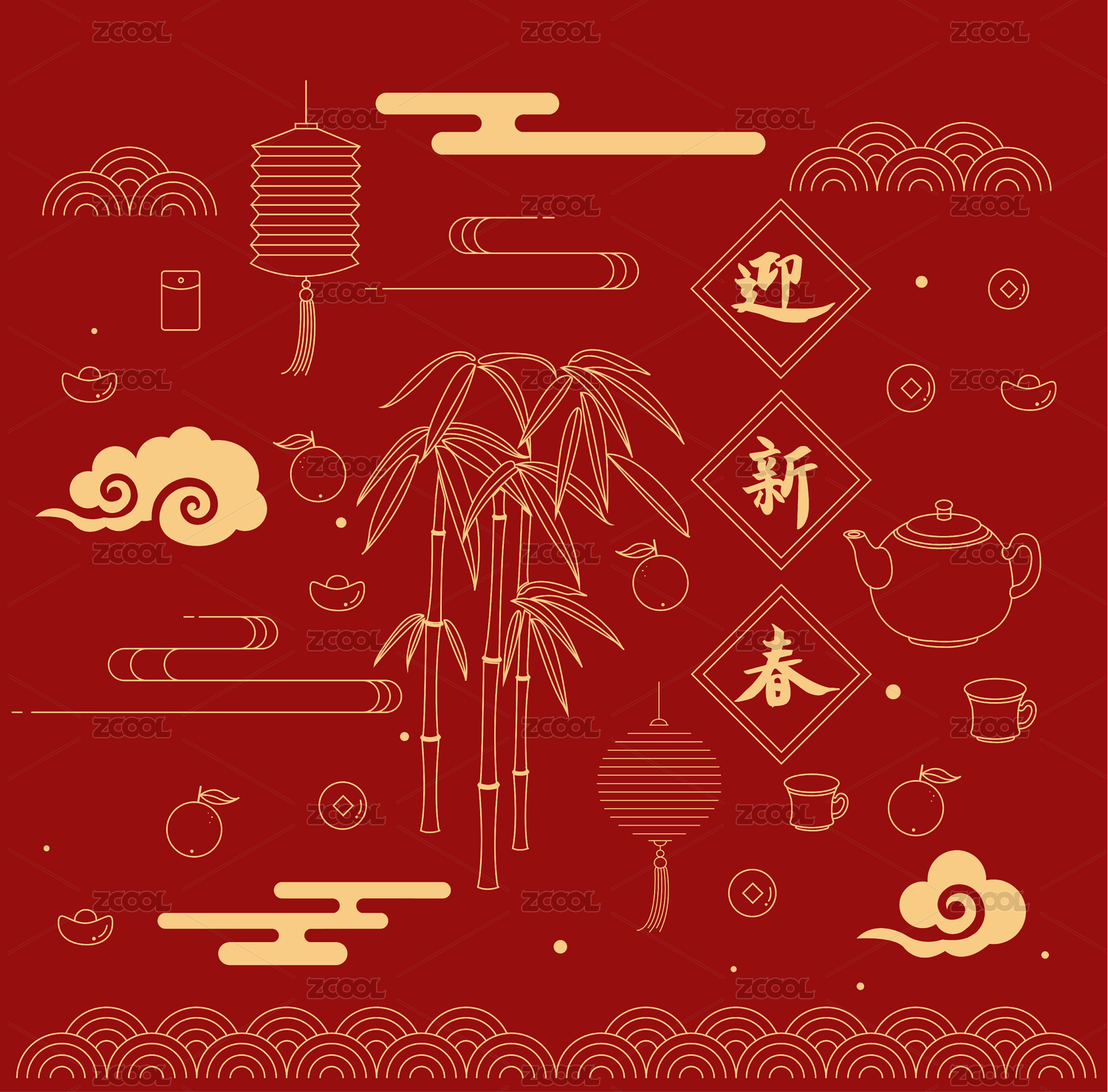 端午节,粽子,插画,中国,传统,节日,元素,灯笼,祥云,云纹