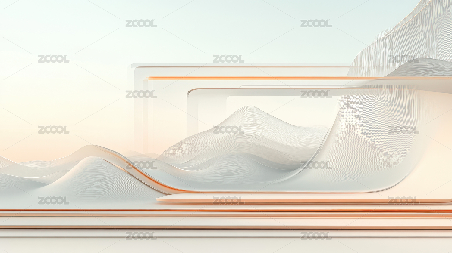 未来主义的橙色波浪与透明面板