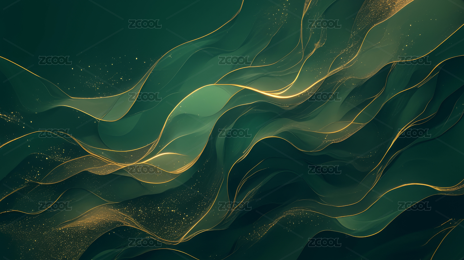 深绿色丝绸背景金色线条点缀奢华感