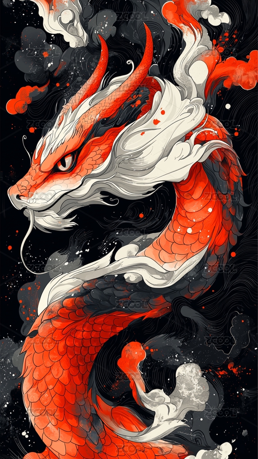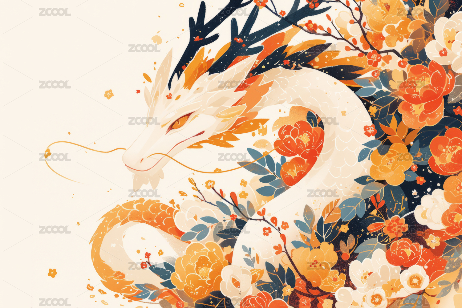 节气,龙,插画,雨水,桃花,粉色,暖色,蓝色,云,生肖