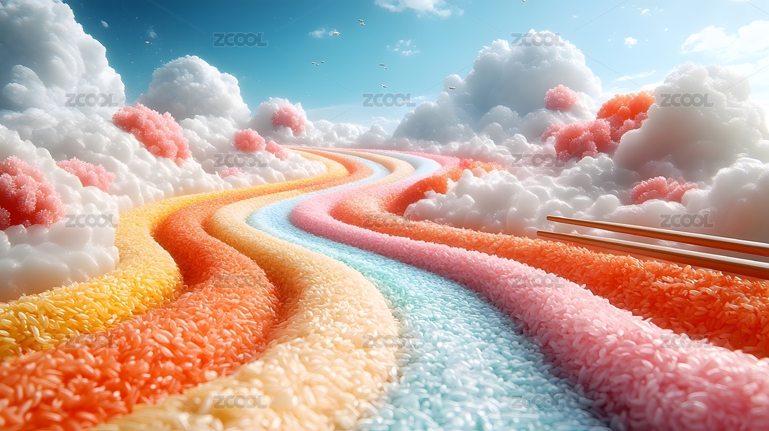 彩色稻米田园风光