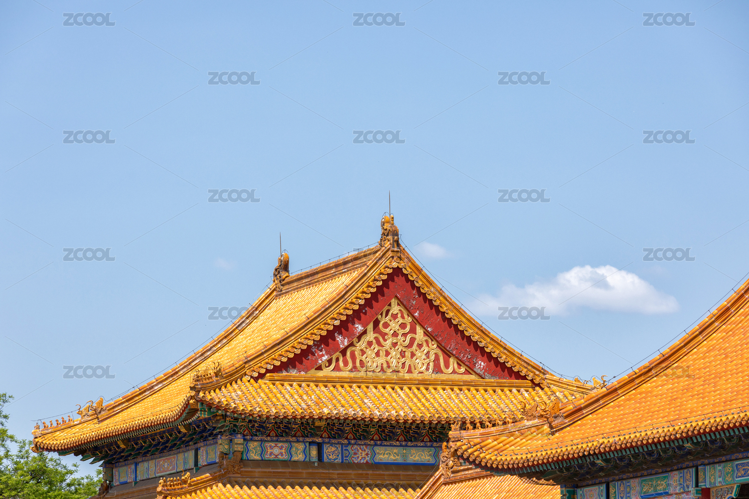 秋天蓝天下的北京颐和园公园的古亭台楼阁建筑