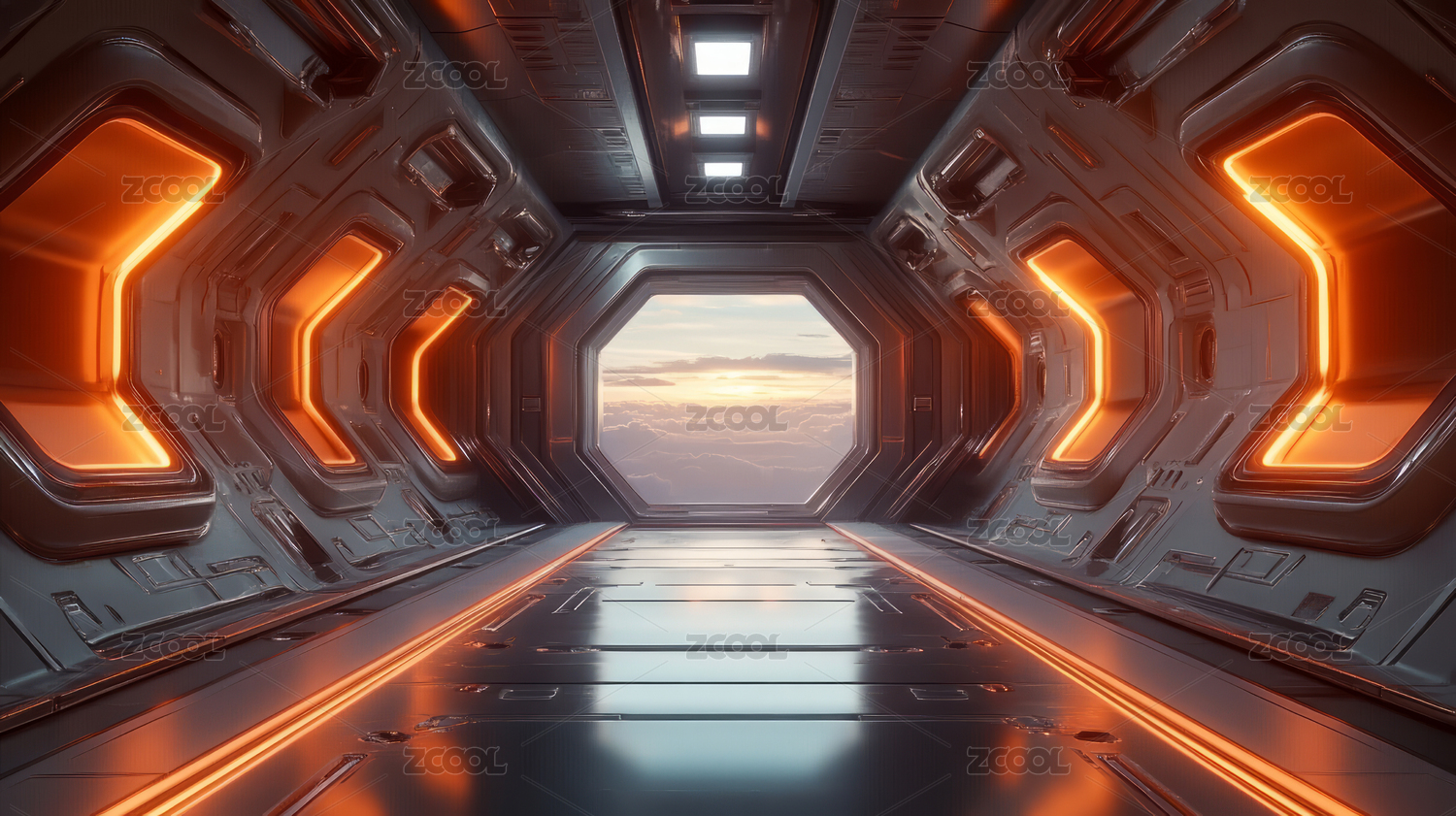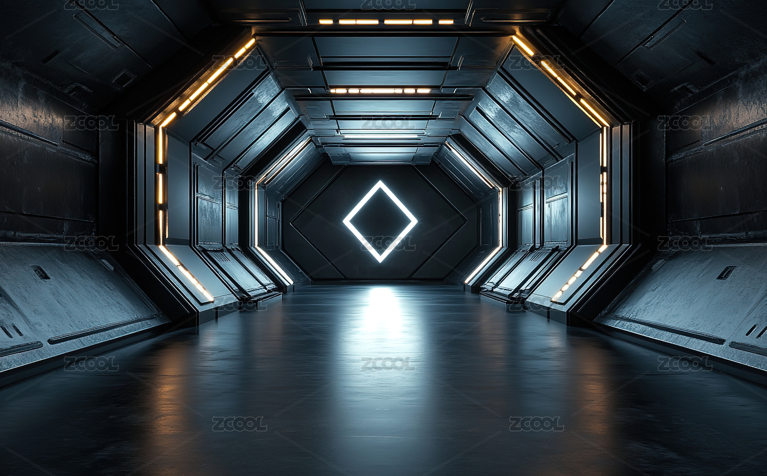 未来, 发光, 设计, 现代, 金属, 光线, 反射, 清晰, 科幻, 走廊