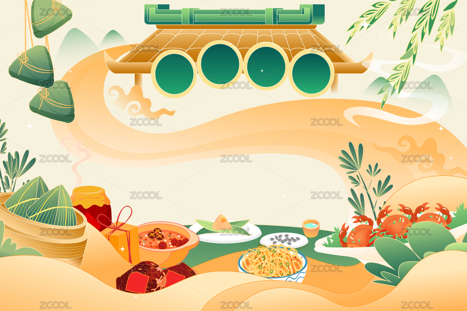 端午节风景矢量插画
