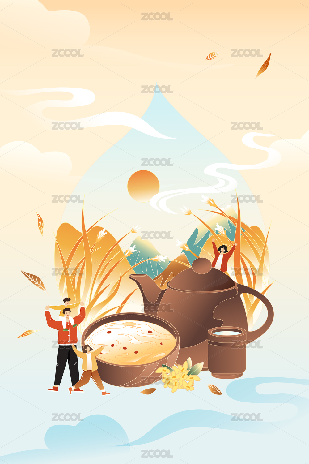 渐变,矢量,插画,插图,扁平,卡通,背景,叶子,中国风,传统