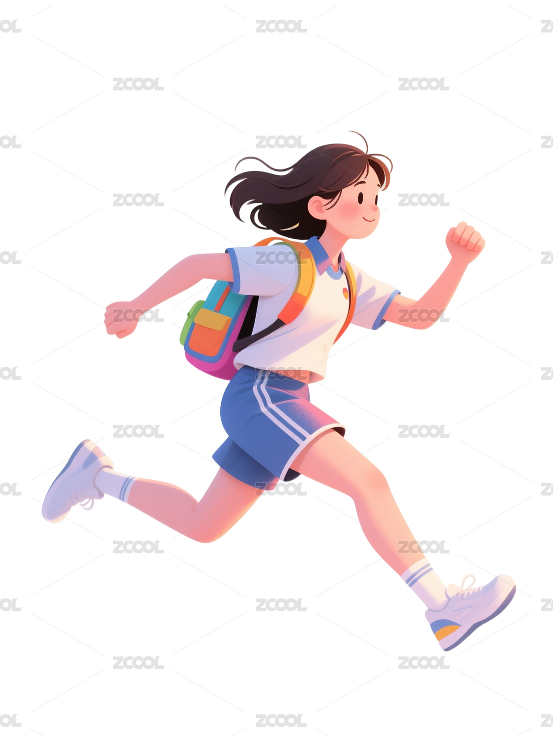 男性戴着学士帽背着包拿着证书奔跑彩屑插画