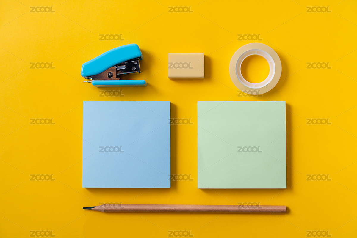 黄色,背景,文具,用品,学习,教育,整齐,留白,便签,铅笔