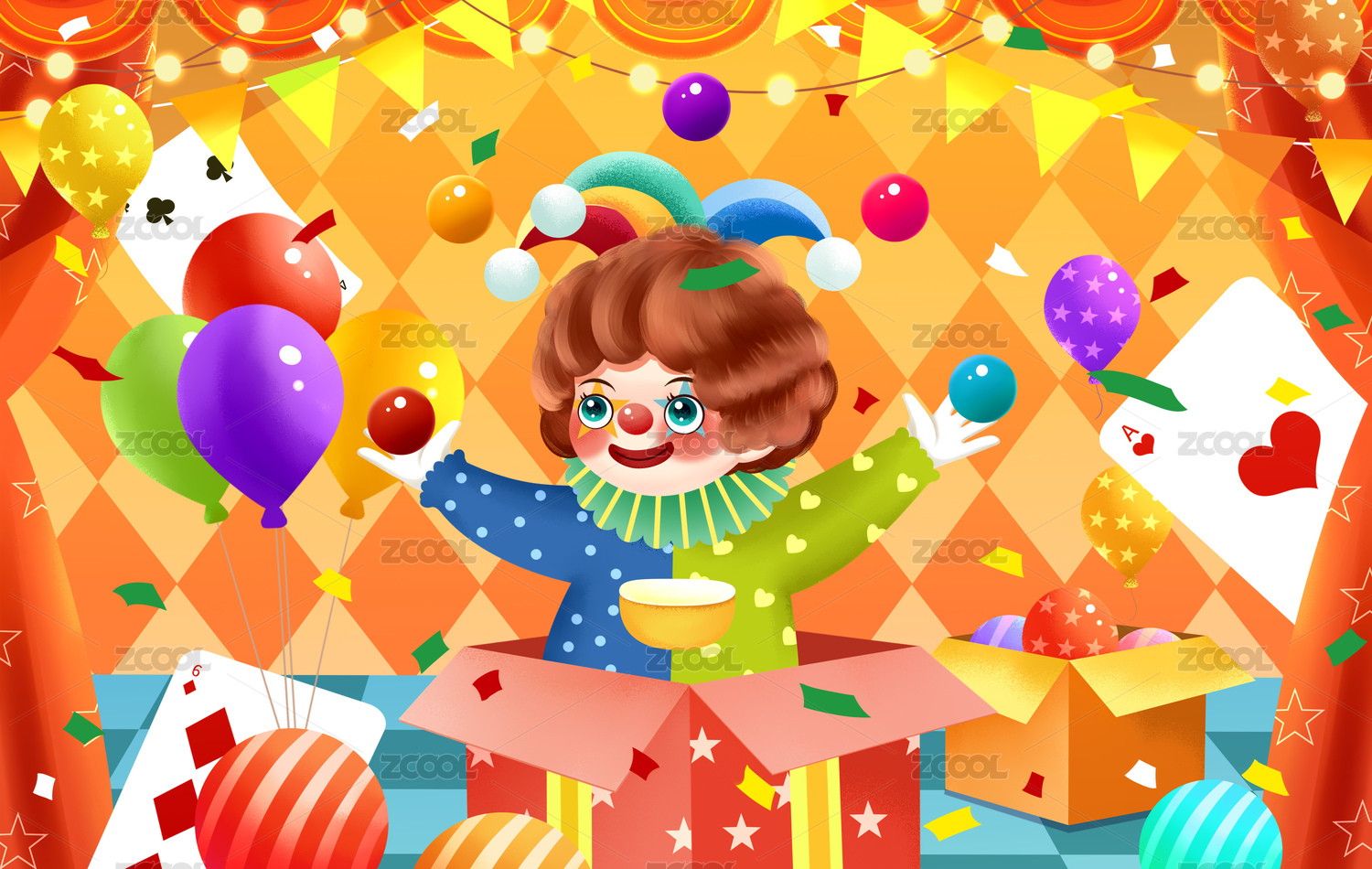 愚人节马戏团可爱小丑插画