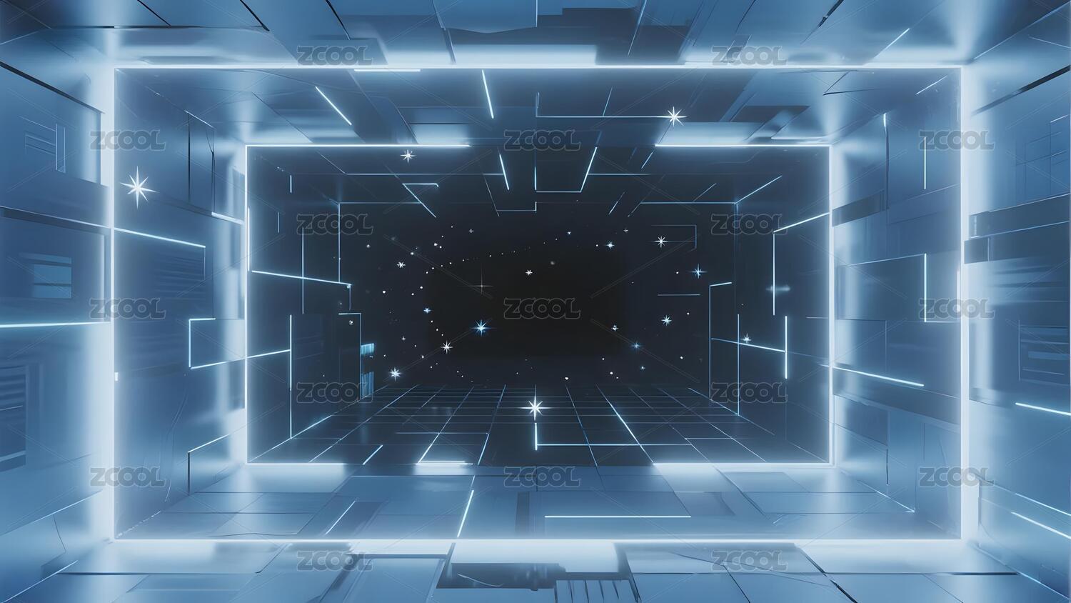 3D渲染科幻延伸蓝色未来科技感空间场景