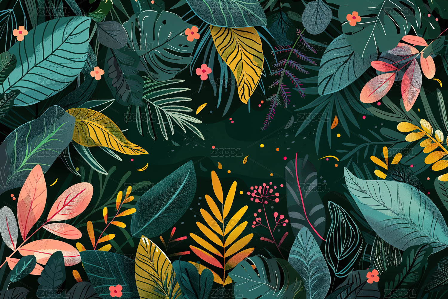 热带叶子图案插画