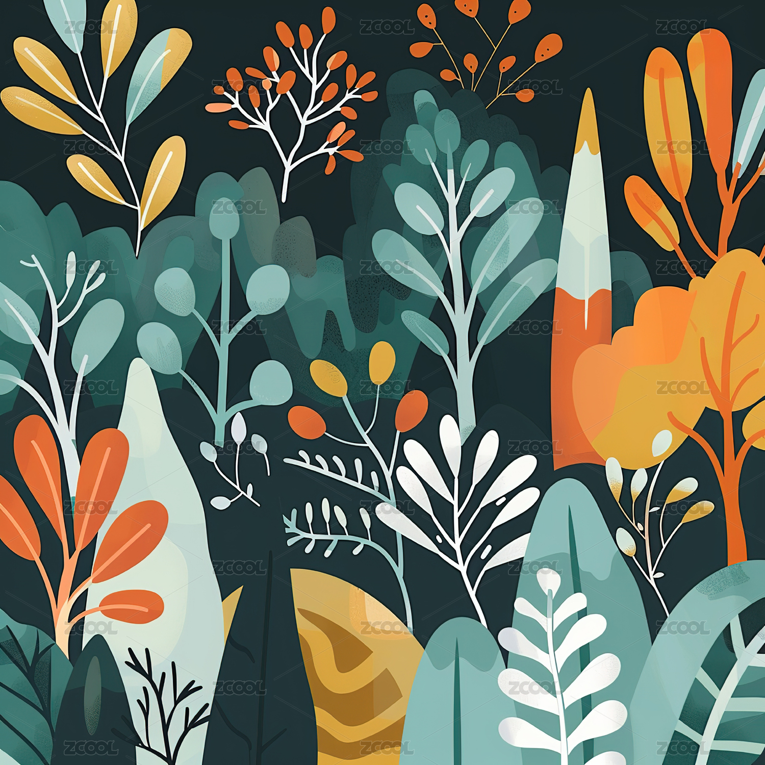 数码大自然植物装饰抽象图形海报网页背景