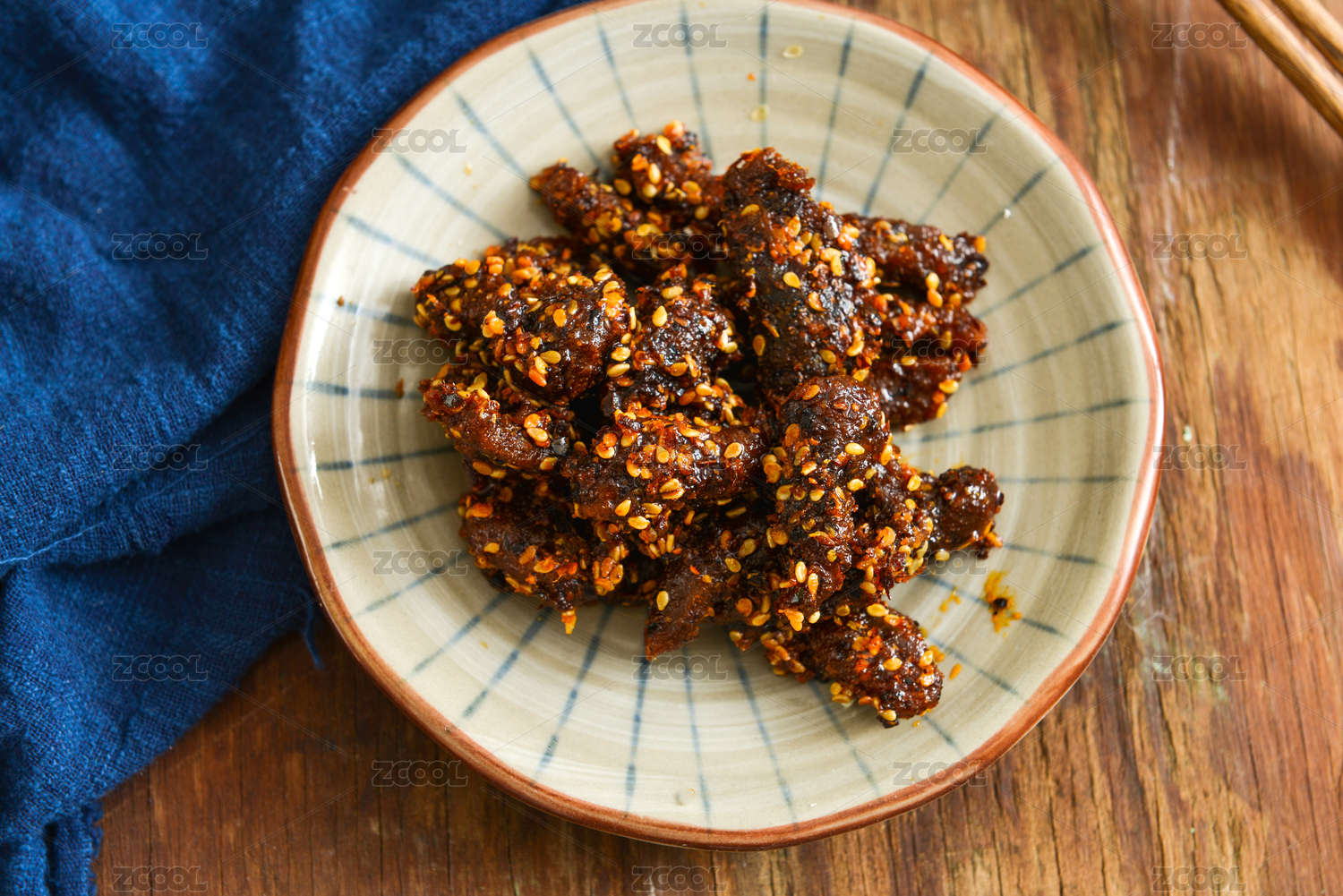 北京地方小吃。木桌子上的一碗老北京炸酱。
