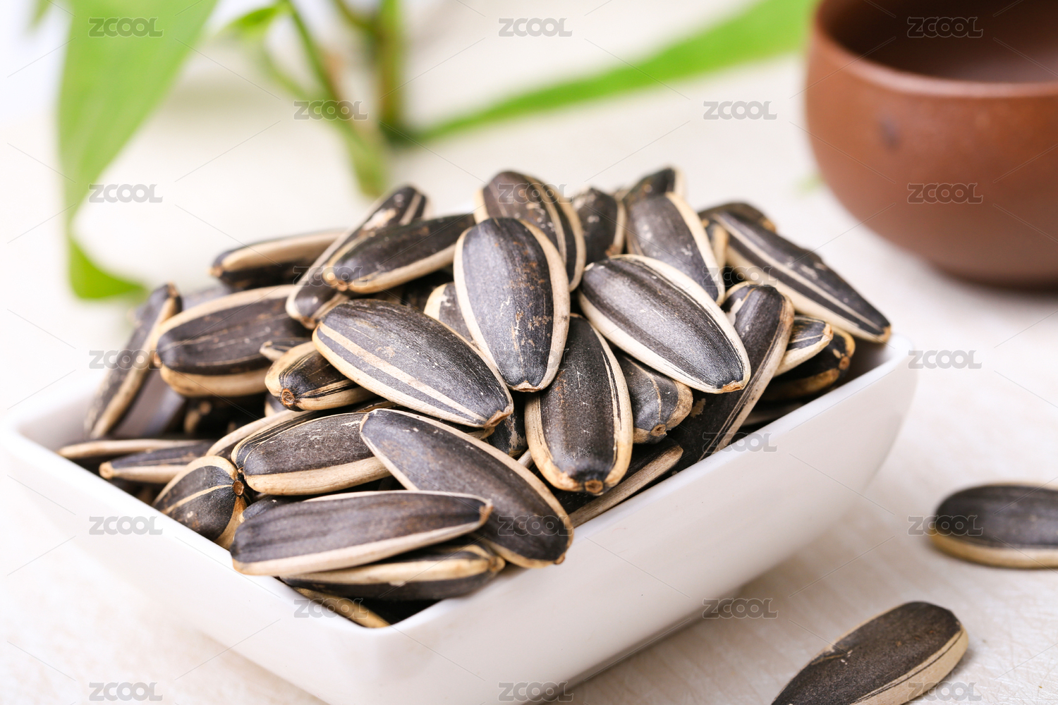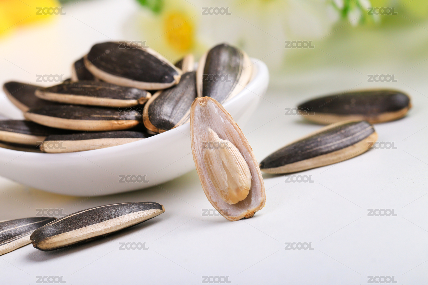 白色背景上摆放的生葵瓜子