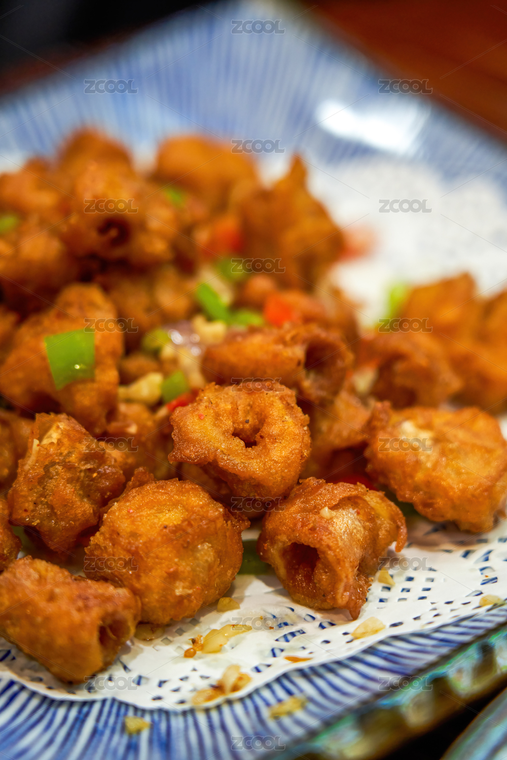 一碟美味的中国菜,油炸脆皮粉肠头