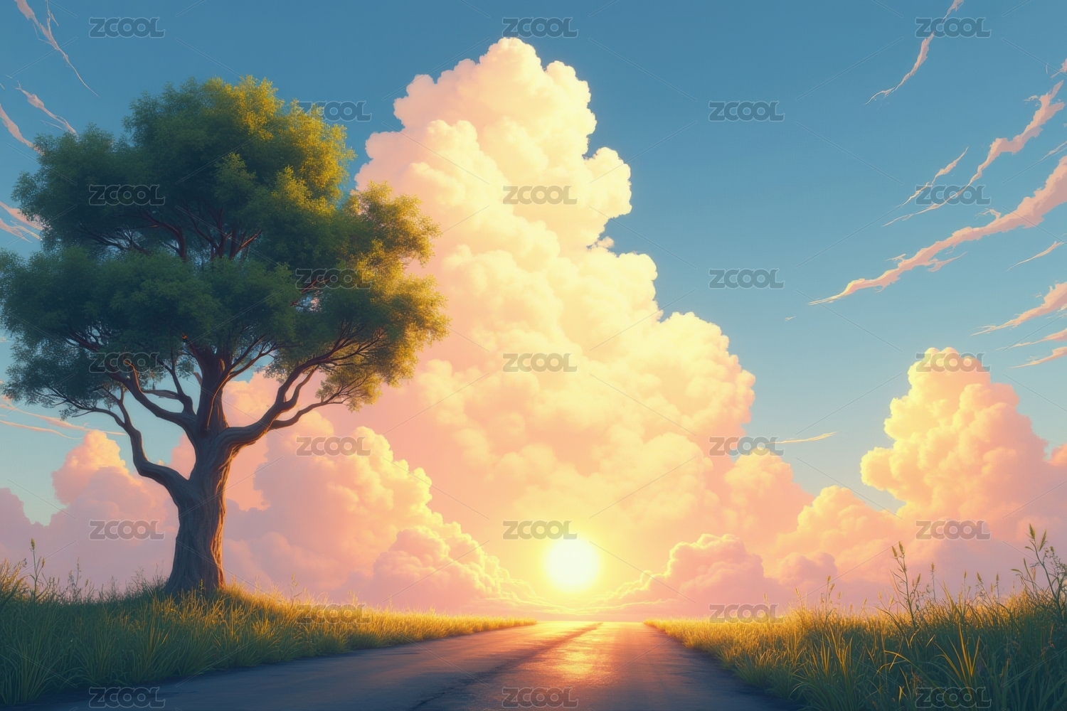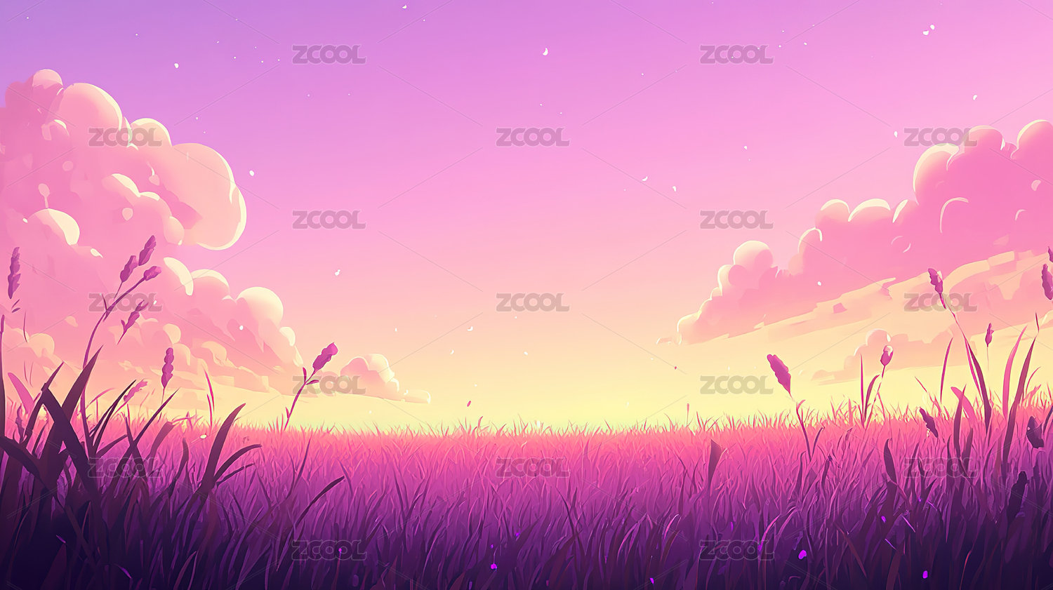 立秋节气户外旅行自然风景处暑卡通唯美插画
