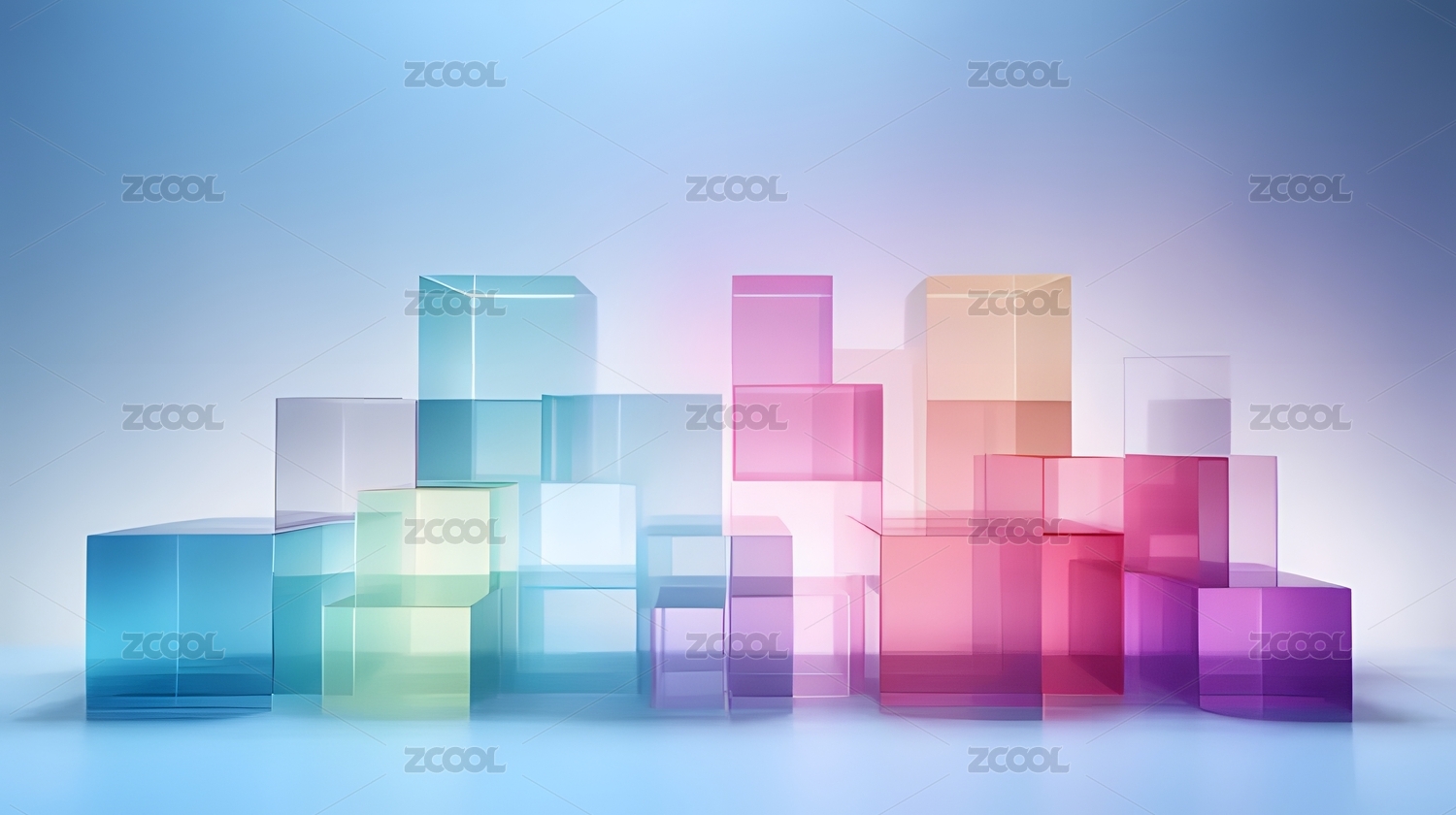 透明彩色立方体渐变背景