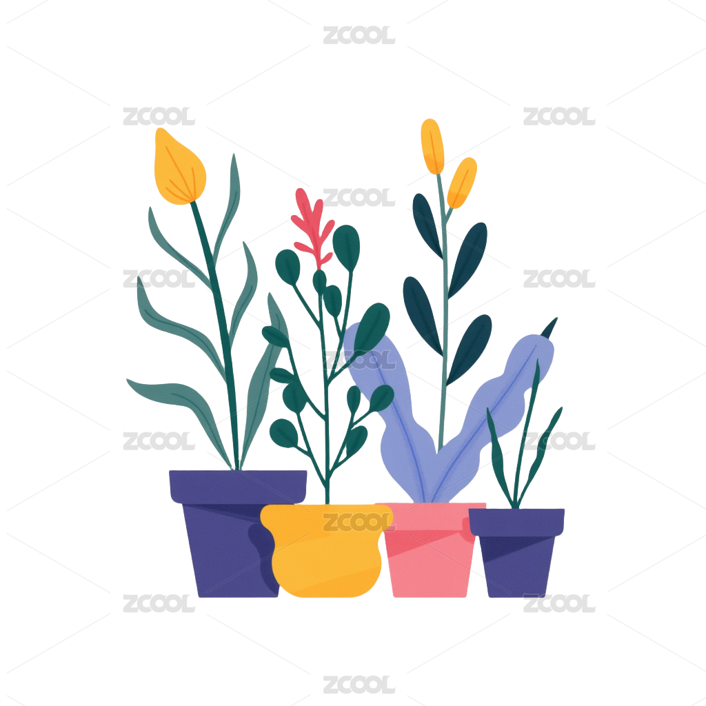 植物,石子,盆栽,花盆,插图,绿色,健康,扁平风,插画,蓝色