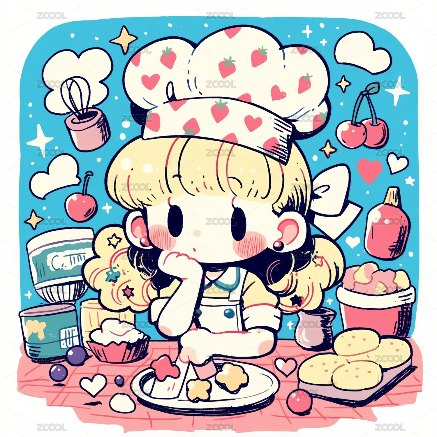 卡通可爱女生食物糕点清新插画