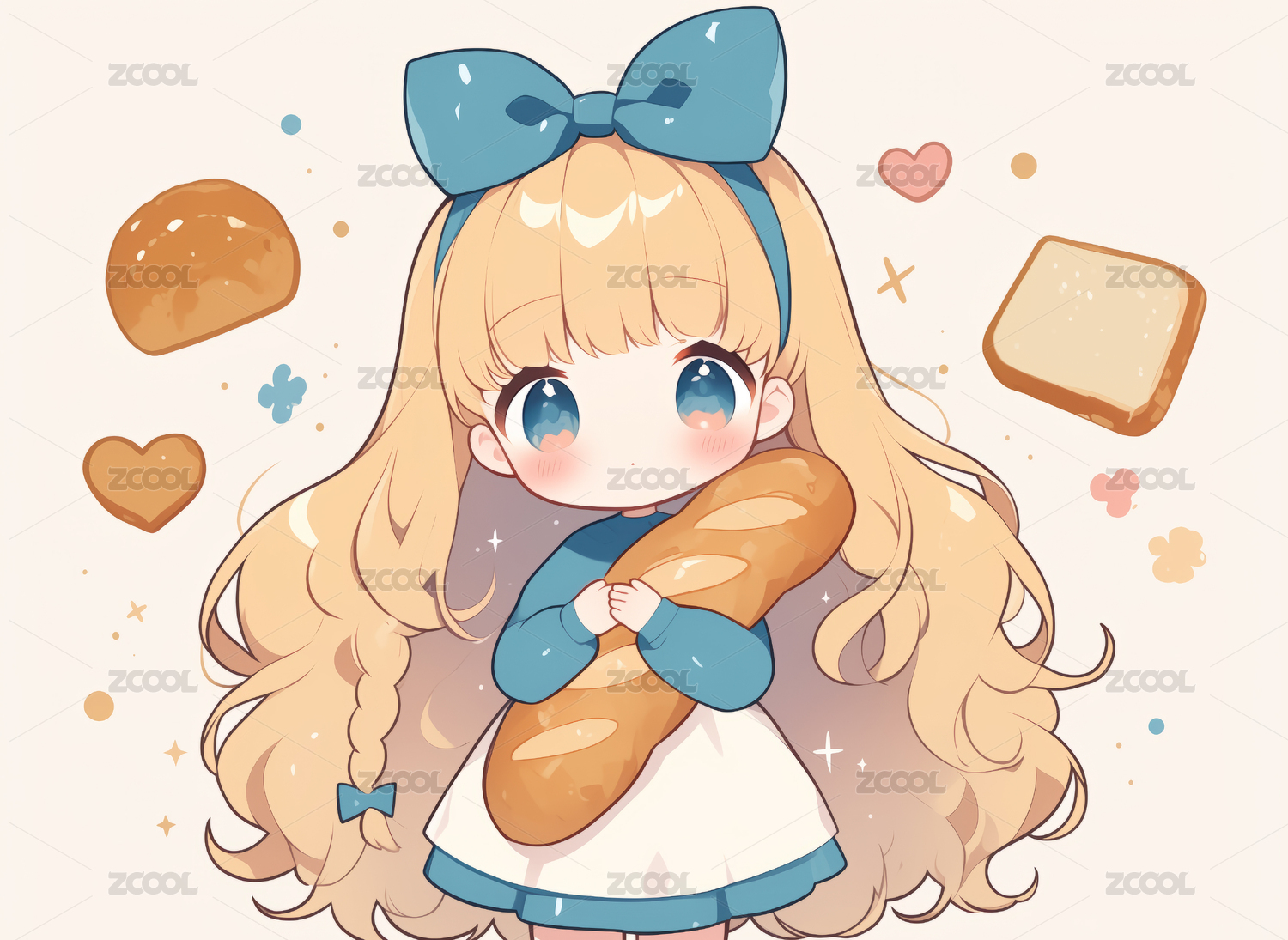 卡通可爱女生面包清新治愈插画
